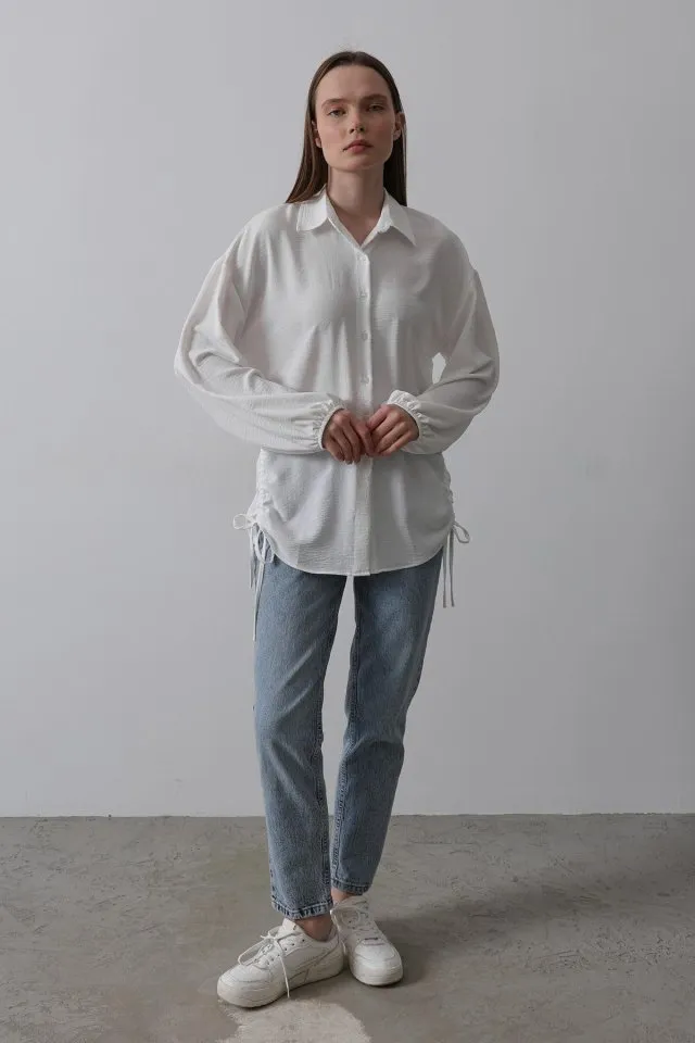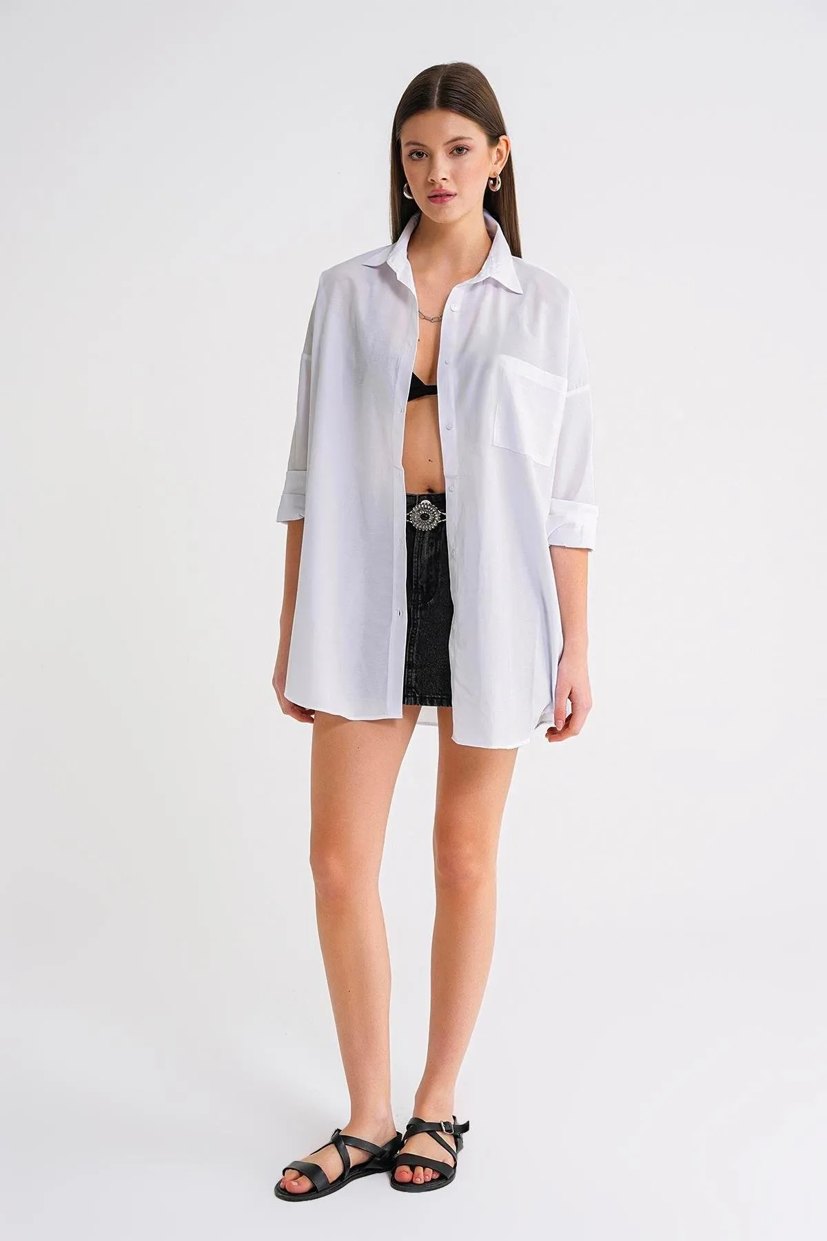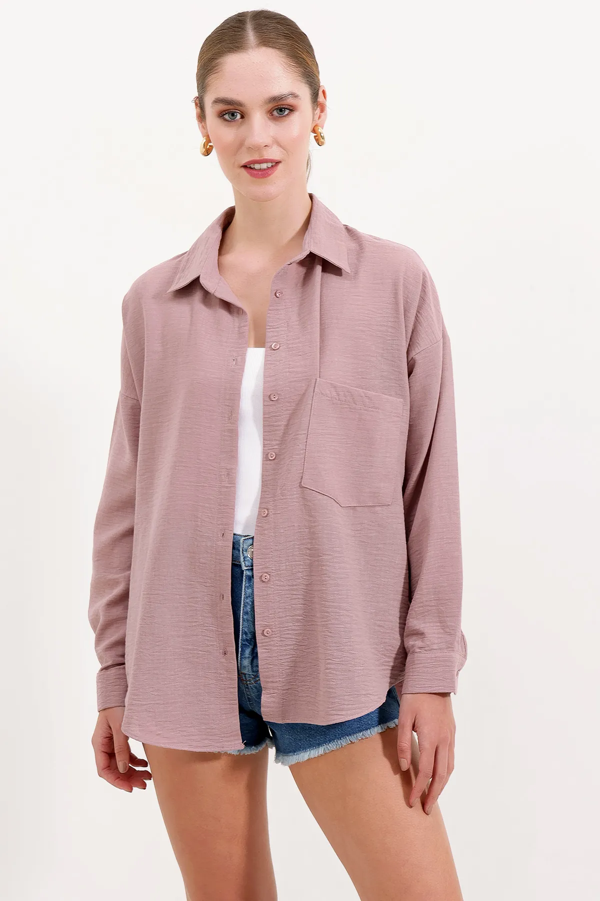 قميص مخطط مريح بأكمام طويلة وياقة كلاسيكية وإغلاق بأزرار لإطلالة صيفية يومية شيك.