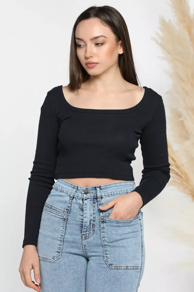 بلوزة من قماش جوخ بياقة قميص وأكمام منفوخة وتفصيلة أزرار أمامية للنساء - Beyond Store