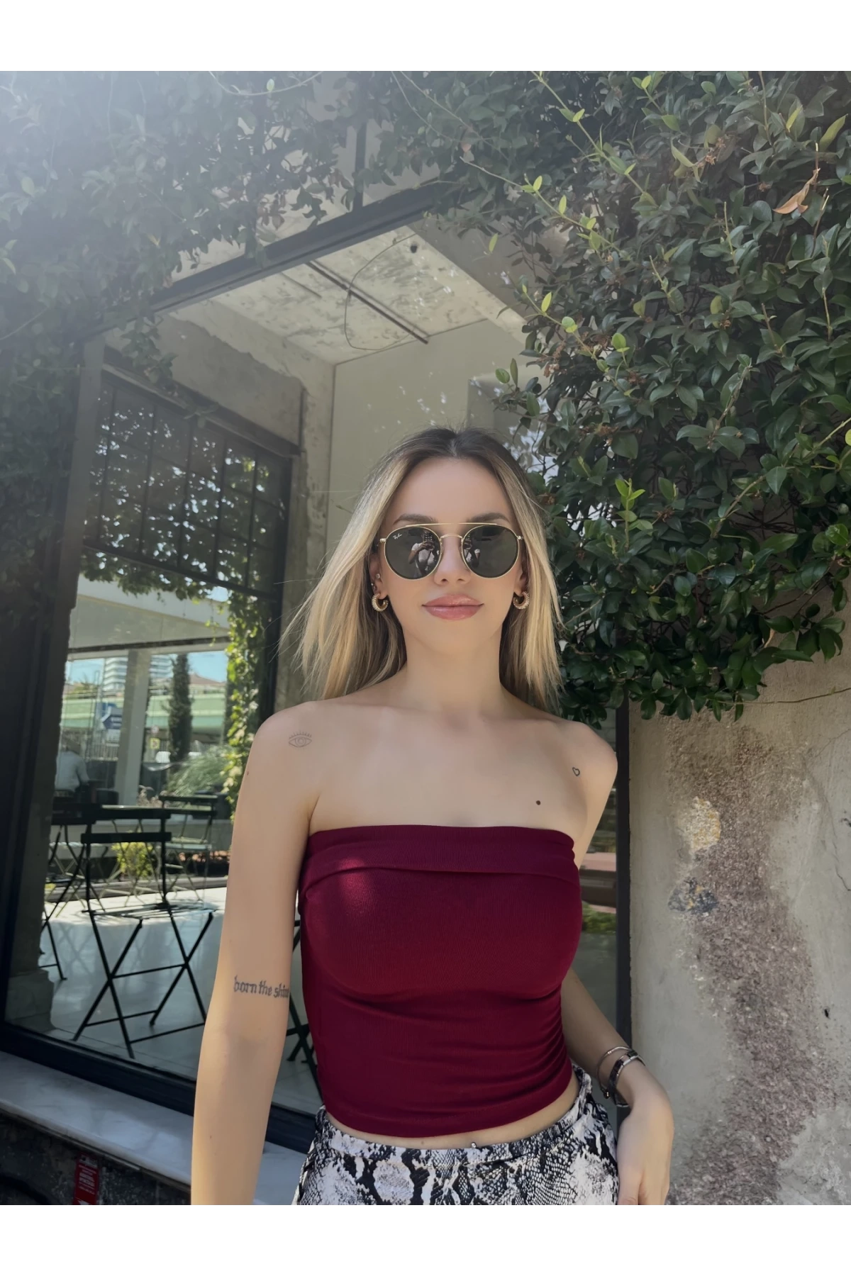 بلوزة قصيرة بدون أكمام مزينة بالترتر مع تصميم بياقة هالتر أنيق. مثالية للحفلات والمناسبات المسائية، وتمنح إطلالة أنثوية جريئة ومريحة.
