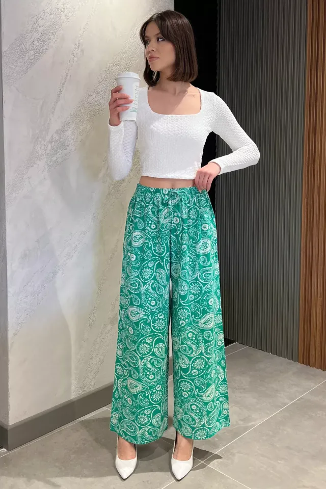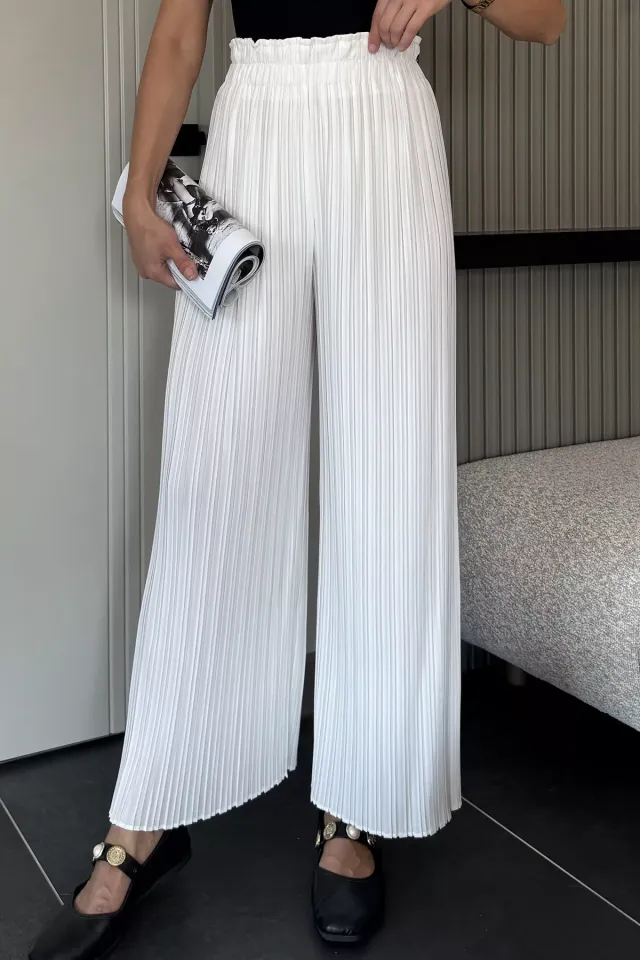 بنطال ساتان كريب بخصر عالي وساق واسعة بطيات - Beyond Store