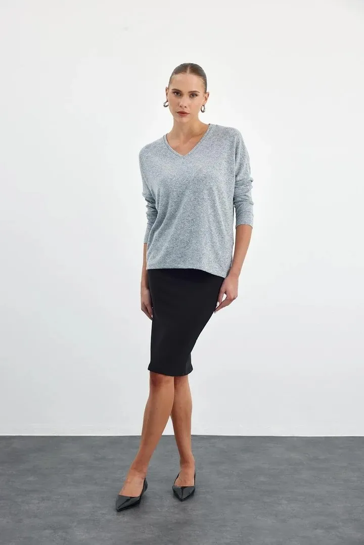 بلوزة مريحة بنقشة منقوش بياقة دائرية وتفصيلة طبقات بإكسسوار لستايل يومي صيفي عصري ومريح.