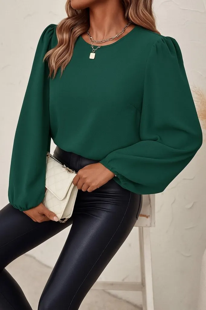 بلوزة صيفية بأكمام خفاش وياقة قائمة تمنح مظهرًا عصريًا مريحًا. خفيفة وسهلة الارتداء، مناسبة للأيام الحارة، وتوفر حرية حركة مع إطلالة يومية أنيقة.