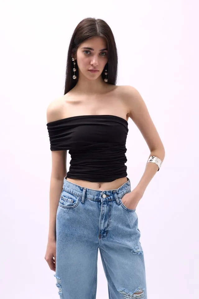 بلوزة ساتان أنيقة بدون أكمام بتفاصيل ثنيات تضيف لمسة أنثوية راقية. ناعمة وخفيفة، مناسبة للإطلالات اليومية أو للمناسبات الخاصة، وتوفر راحة مع تصميم أنيق.