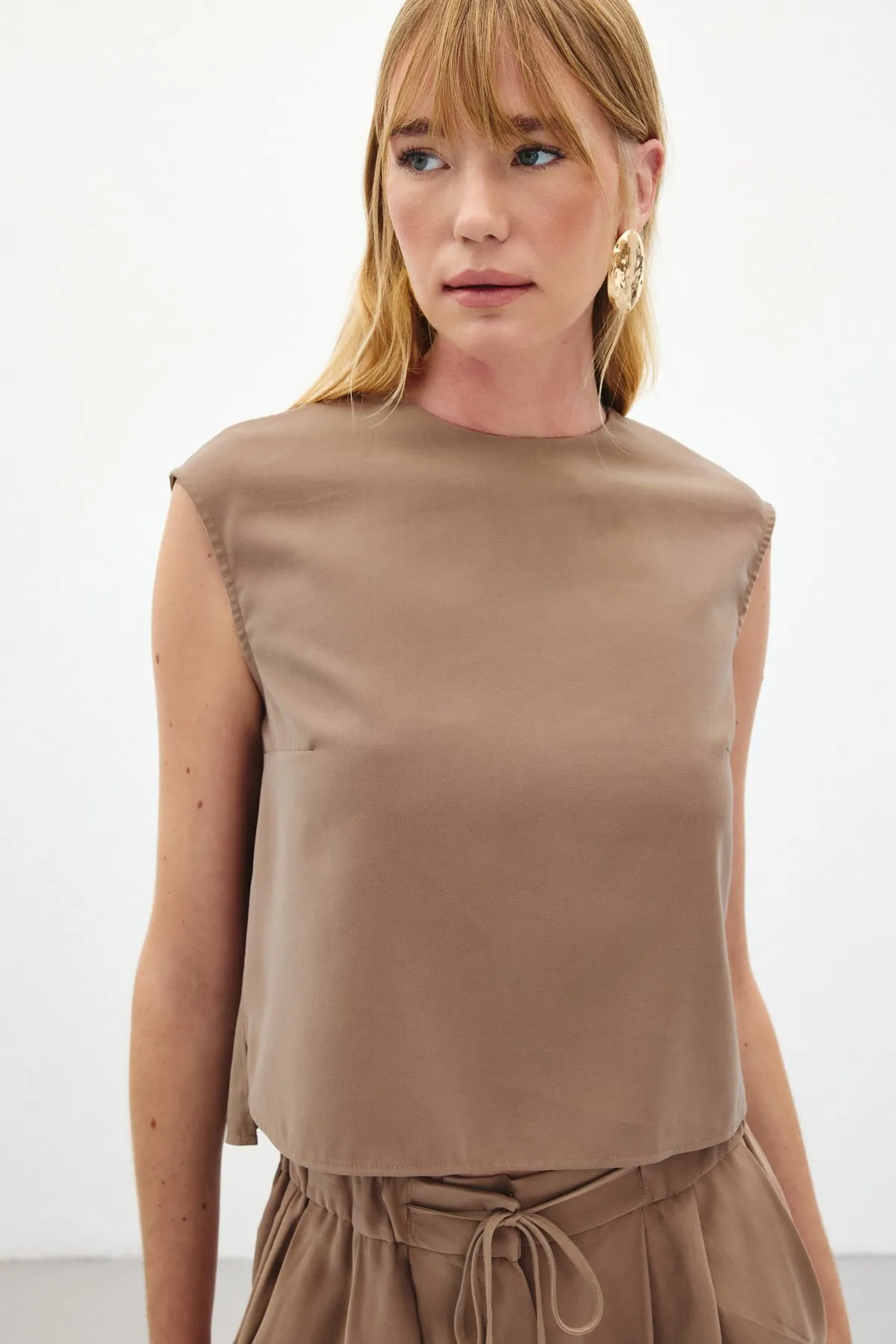 بلوزة نسائية منقطة مجعدة بدون أكمام - Beyond Store