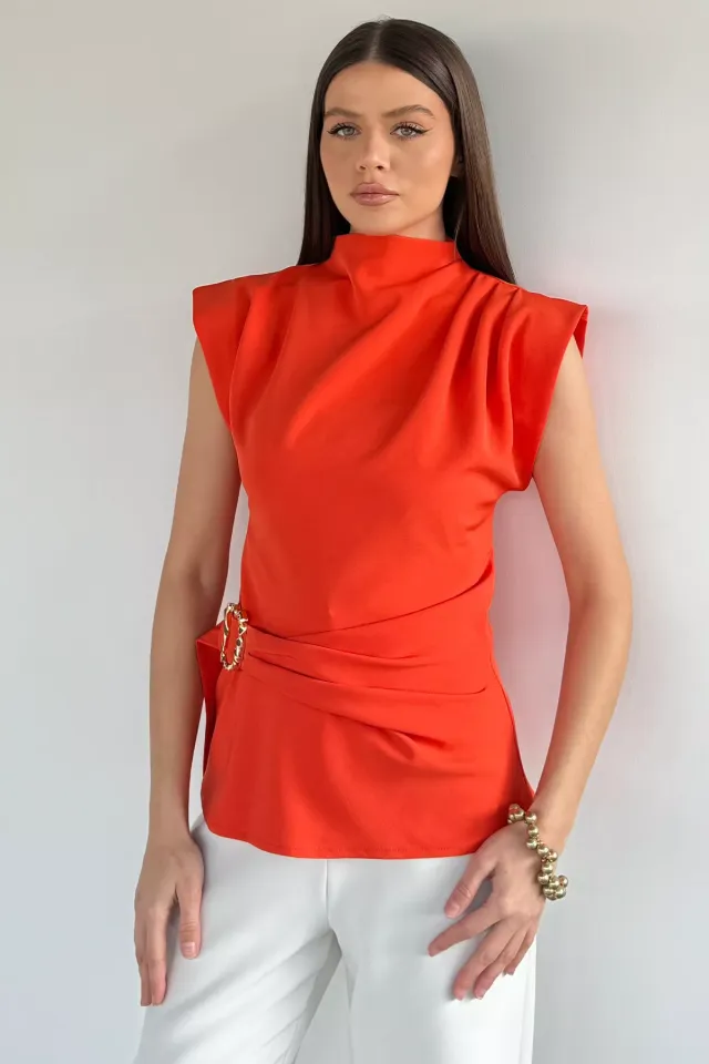بلوزة نسائية منقطة مجعدة بدون أكمام