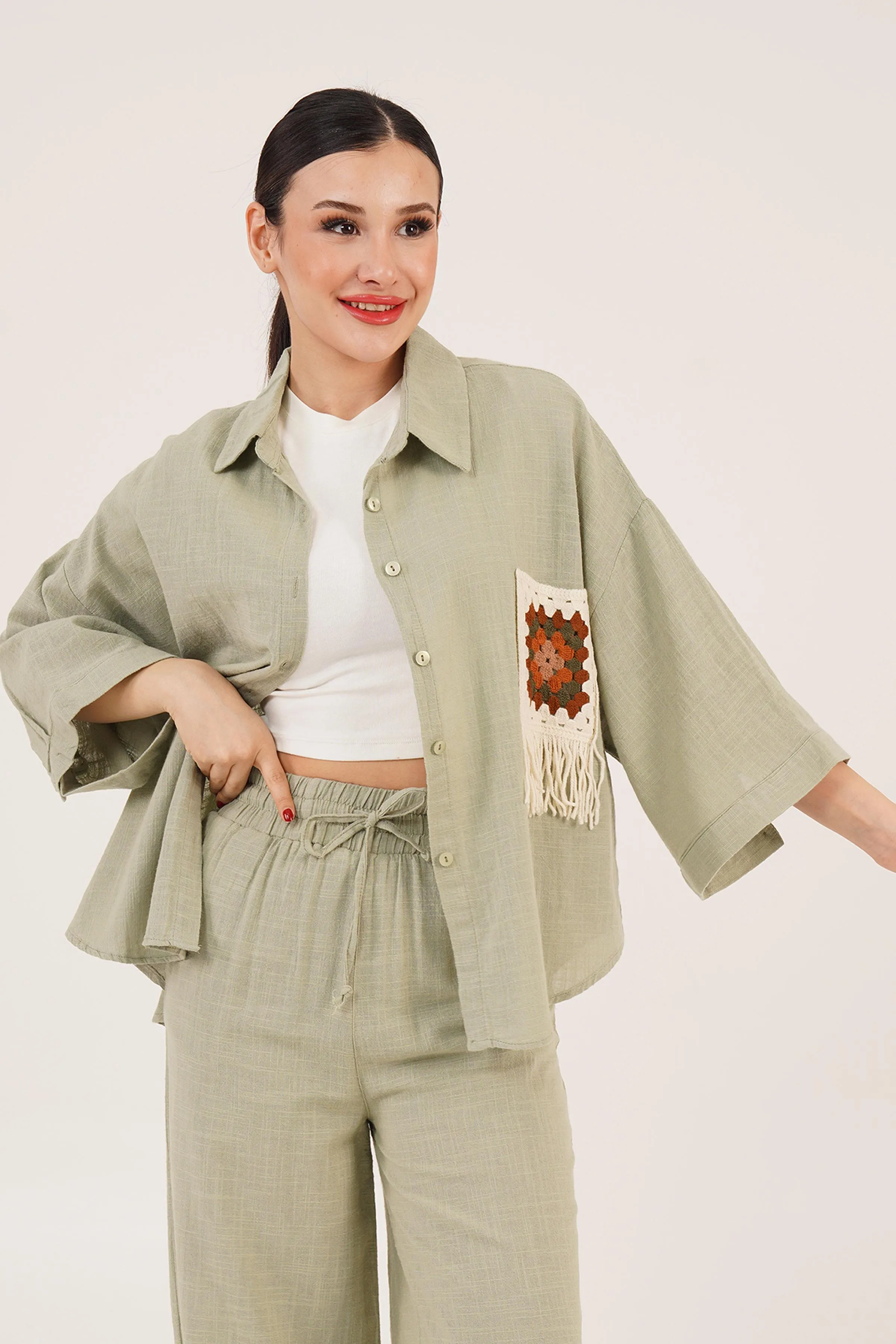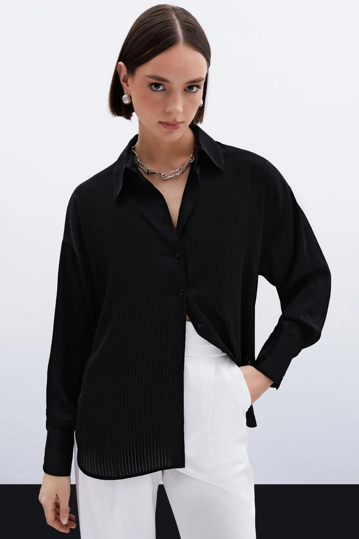 قميص نسائي مخطط بتصميم عصري وأكمام قصيرة قابلة للطي تمنحك إطلالة عملية وأنيقة. مصنوع من قماش خفيف ومريح، مناسب للاستخدام اليومي.