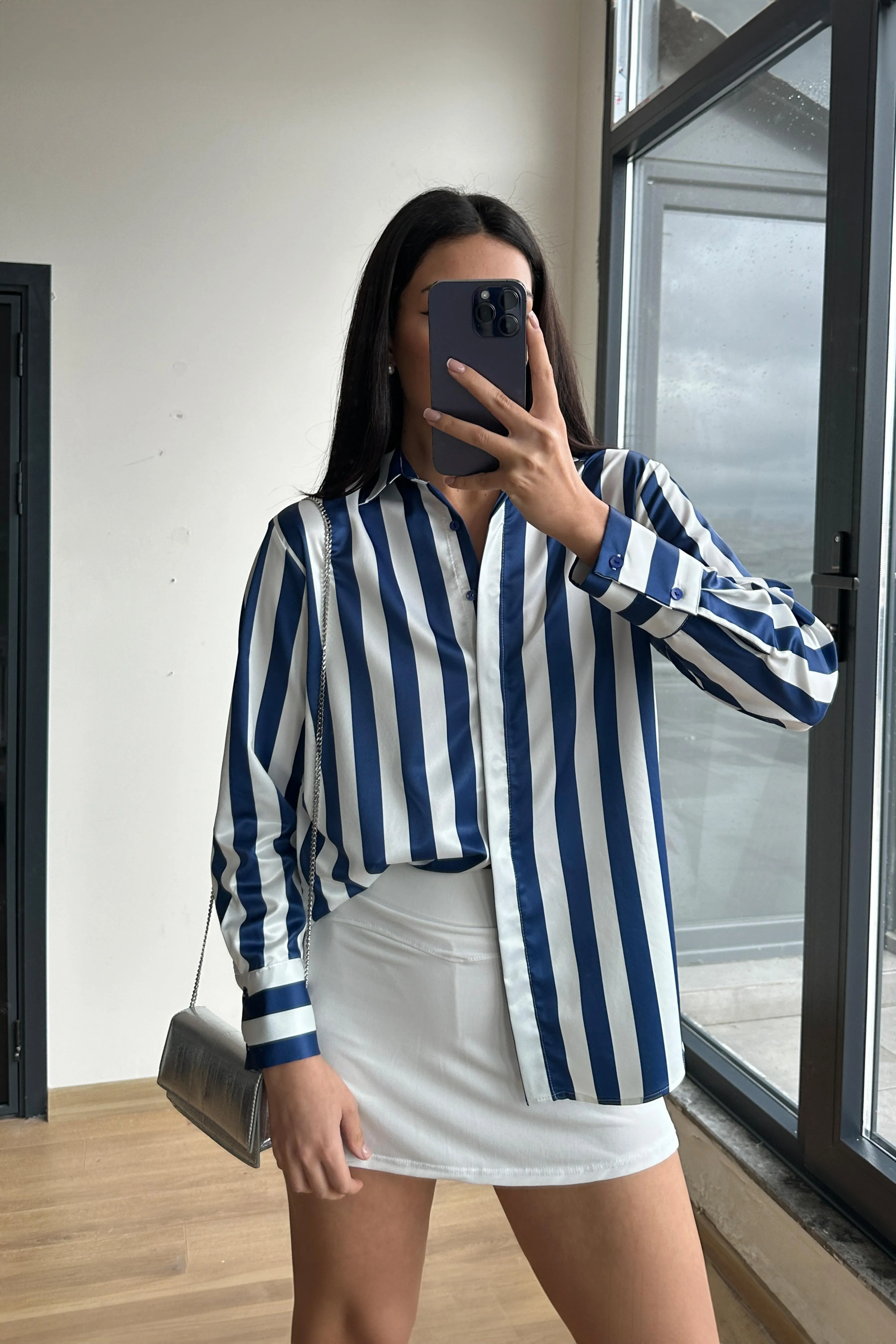 قميص نسائي أوفر سايز مخطط من قماش كتان مخلوط، يتميز بخفة وتهوية عالية تمنحك راحة طوال اليوم. تصميم عملي بأكمام قصيرة يناسب الإطلالات الصيفية والكاجوال بسهولة وأناقة.