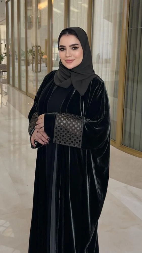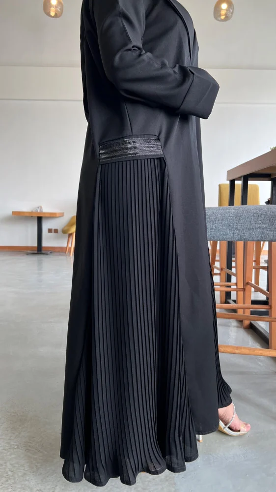 عباية نسائية أنيقة مناسبة للاستخدام اليومي والكاجوال والمناسبات المسائية. تتميز بياقة دائرية وأكمام طويلة بأسلوب بيشوب مع تفاصيل طيات أنيقة، وقصة A-line انسيابية تمنح راحة وقَصّة منتظمة. رباط الشد يتيح إمكانية التعديل لإطلالة متناسقة، مناسبة لفصل الصيف.