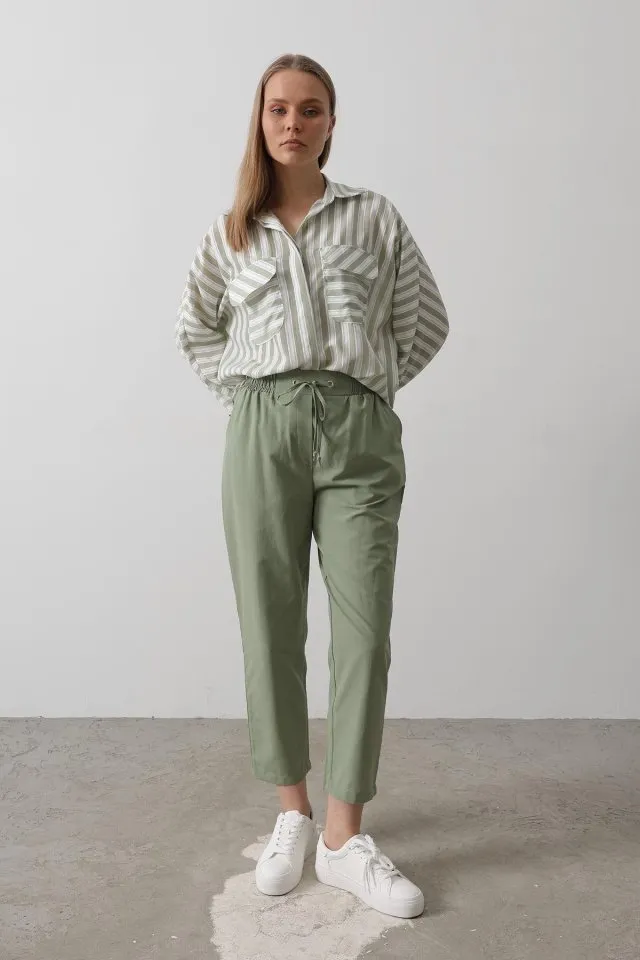 بنطال بخصر مطاطي مصمم للاستخدام اليومي بقصة مريحة وطول كامل مع بنية أنيقة.