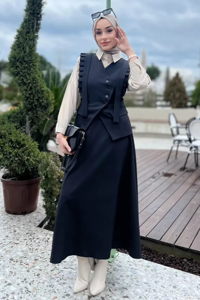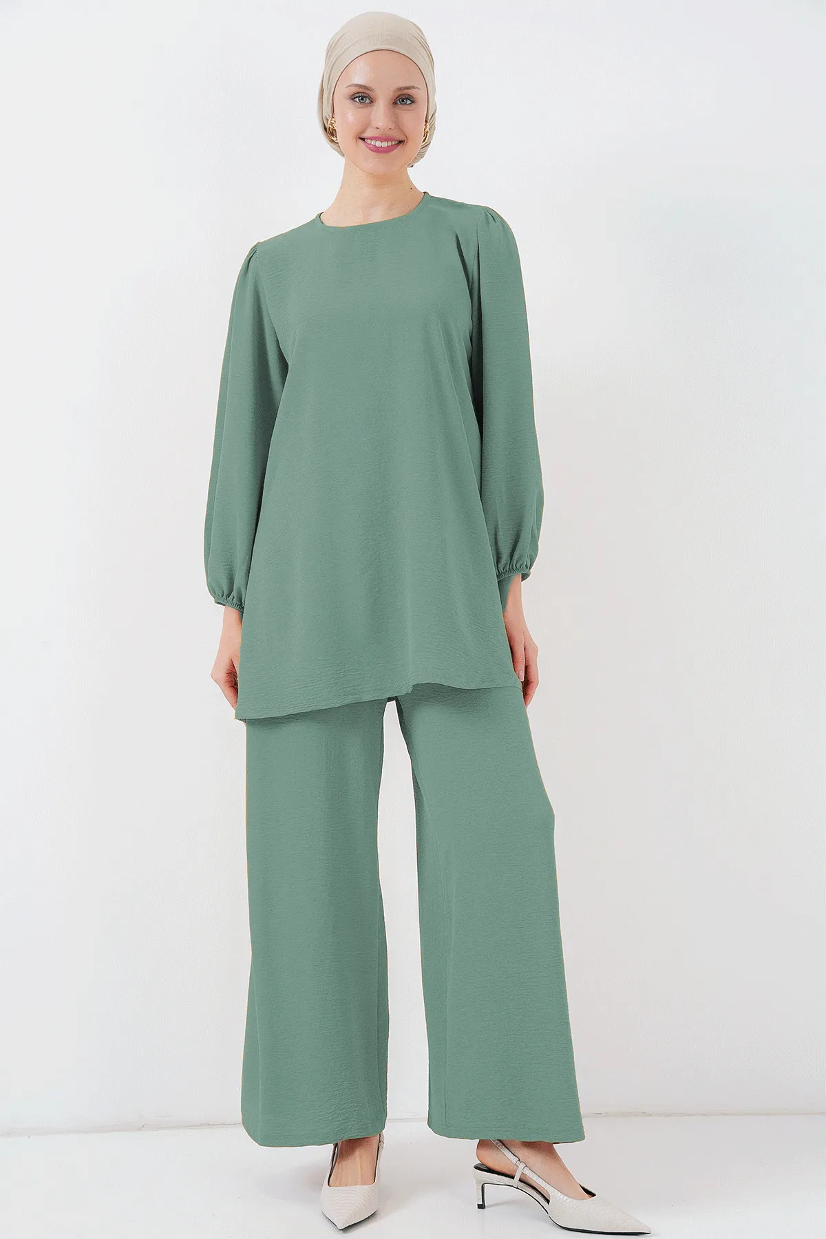 طقم جاكيت وبنطال نسائي أنيق مناسب للاستخدام اليومي الكاجوال. يتميز الجاكيت بتصميم مزدوجة الصدر مع أكمام بالون طويلة وأزرار أمامية، ويأتي مع بنطال طويل لإطلالة متناسقة بقَصّة مريحة. تصميم أوفر سايز عملي ومناسب لفصل الصيف.