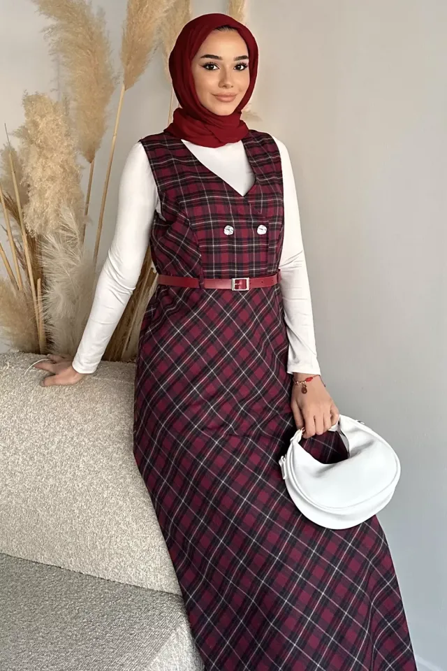 فستان نسائي طويل بطيات مع حزام - Beyond Store