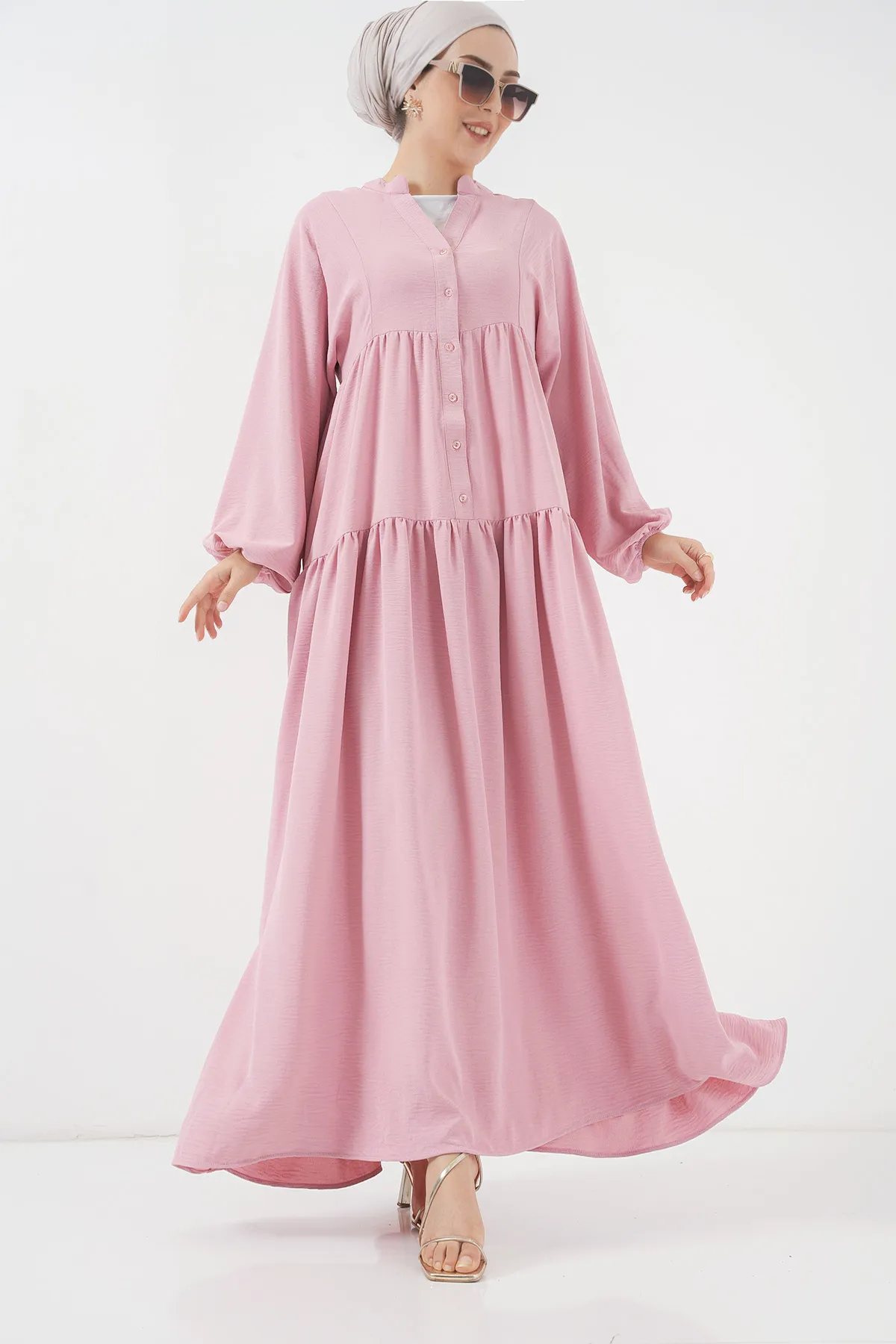 فستان نسائي طويل مناسب للاستخدام اليومي والكاجوال. يتميز بأكمام طويلة عادية وياقة دائرية، مع قصة A-line بطيات تمنح راحة وشكلًا أنيقًا. تفصيلة الحزام تضيف تحديدًا للخصر ولمسة مرتبة، مناسب لفصل الصيف.