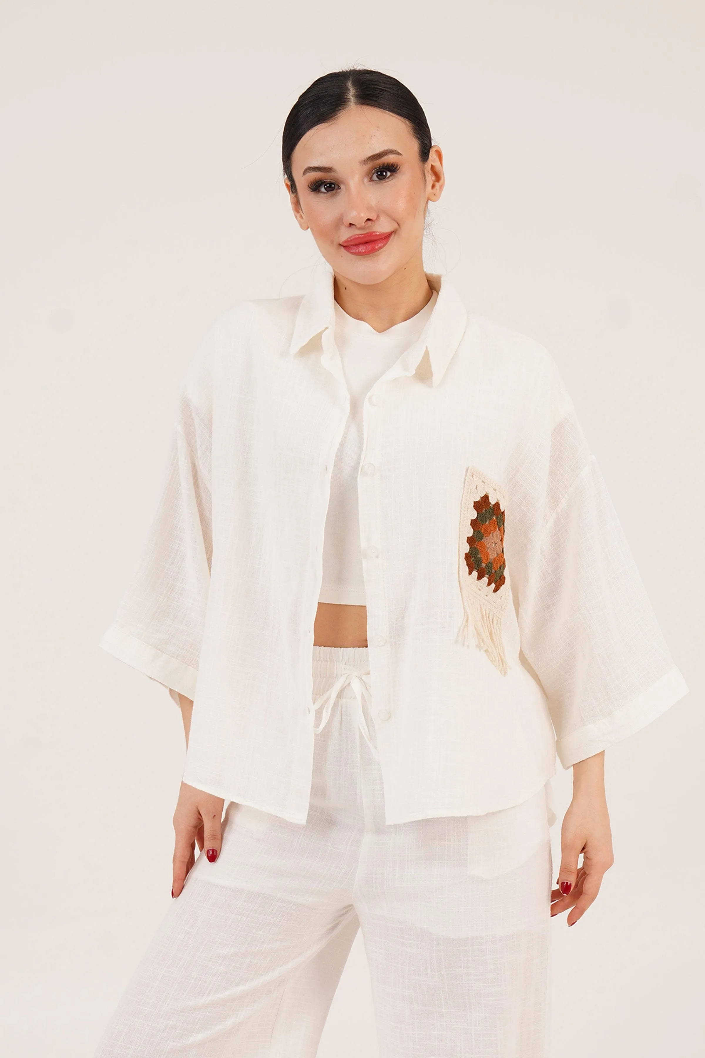 قميص بياقة بيتر بان وأكمام طويلة للنساء - Beyond Store