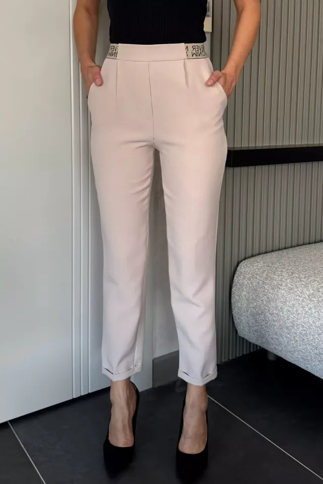 بنطال مريح بخصر عالي وقصة موم فيت مع طيات أمامية وتفاصيل جيوب لستايل يومي شيك وموسمي سهل التنسيق.