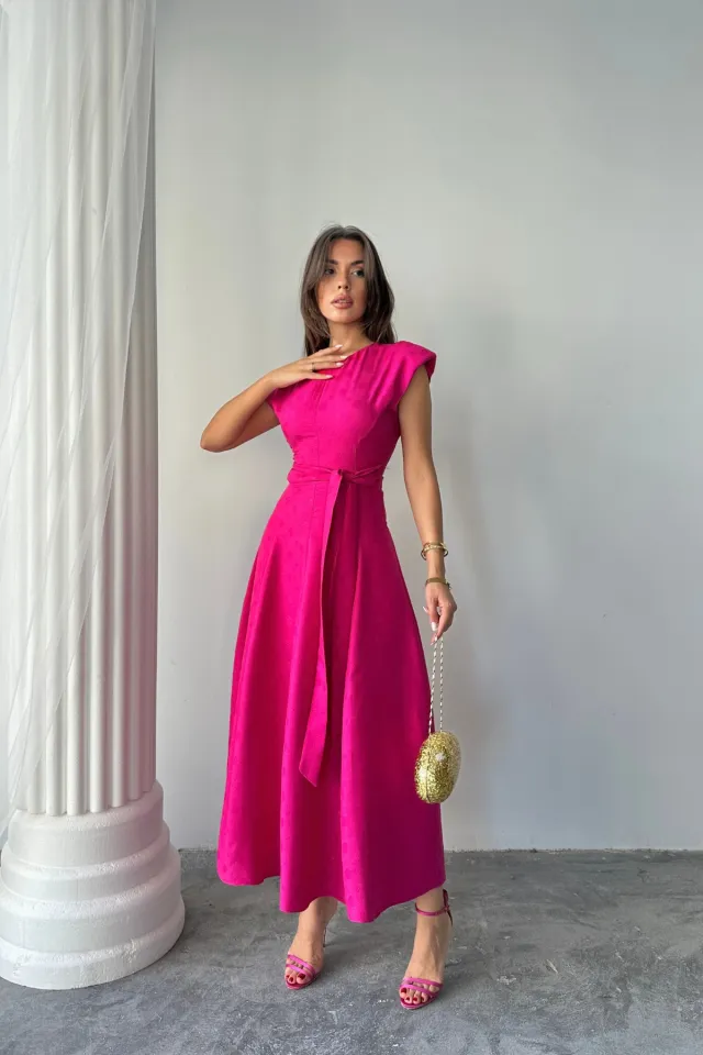 فستان ميني محبوك بكم خفاش وحزام خصر للنساء - Beyond Store