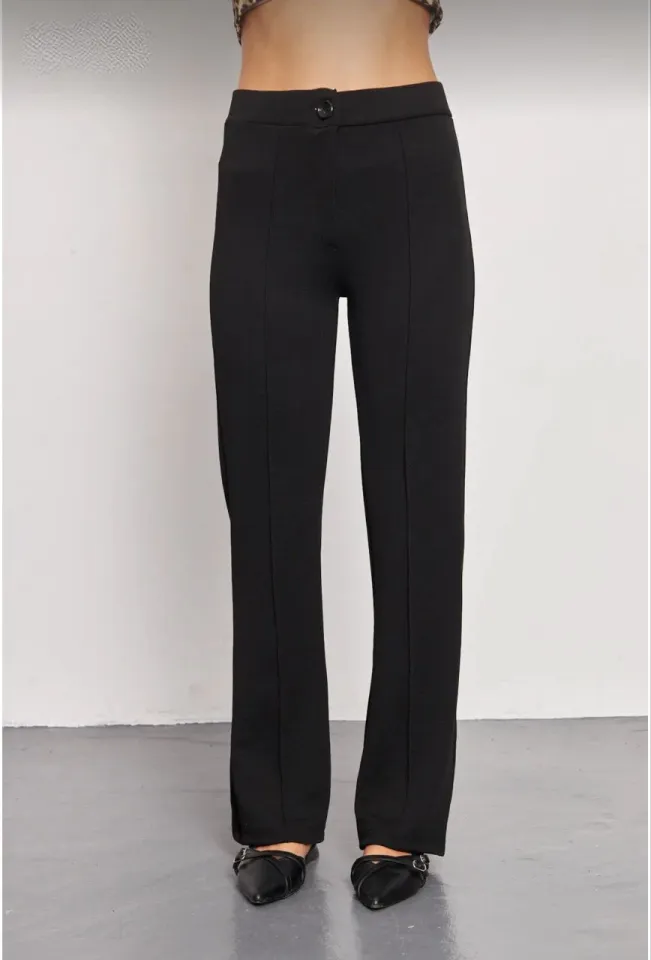 بنطال بخصر عالي بترتر وقماش شفاف وقصة ساق واسعة