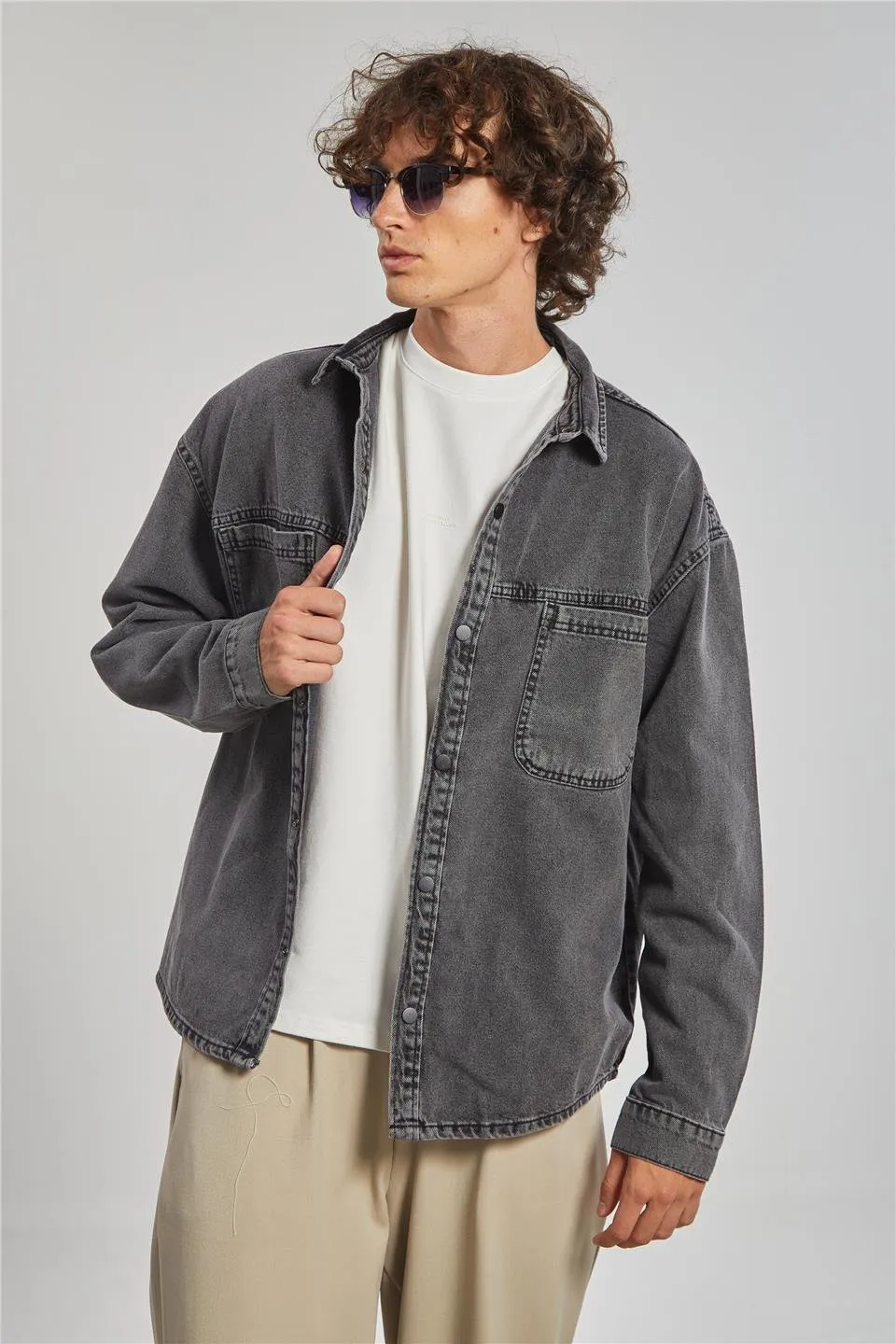 قميص رجالي بأكمام طويلة مزين بشعار وياقة قميص بأزرار أمامية - Beyond Store