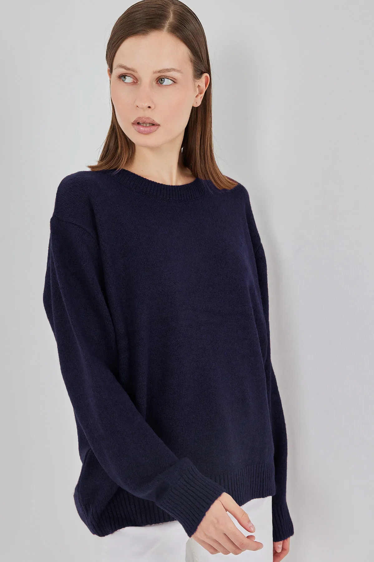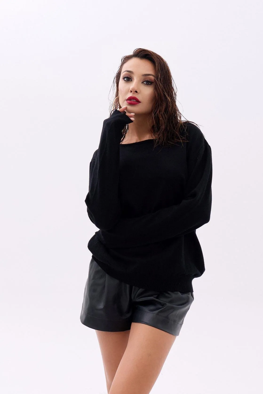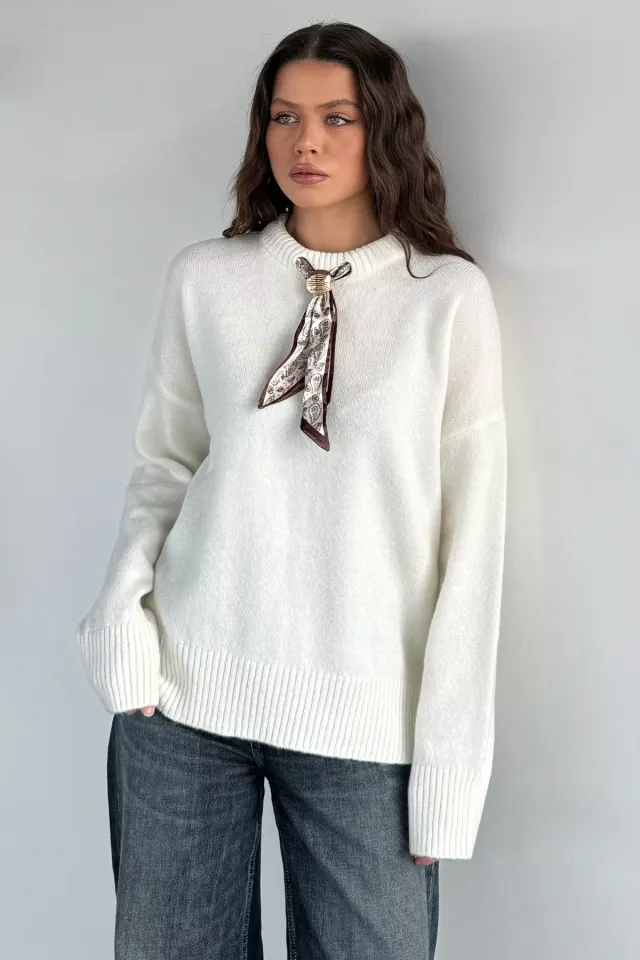كنزة تريكو مريحة بتفصيل كتف مكشوف وياقة V تعطي ستايل عصري كيوت ولمسة أنثوية مناسبة للاستخدام اليومي.