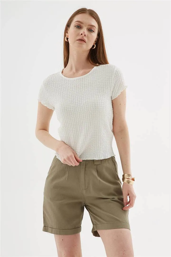 بلوزة مريحة بدون اكمام بياقة ديغاجيه وقصة ضيقة لاطلالة صيفية يومية ناعمة وسهلة التنسيق.