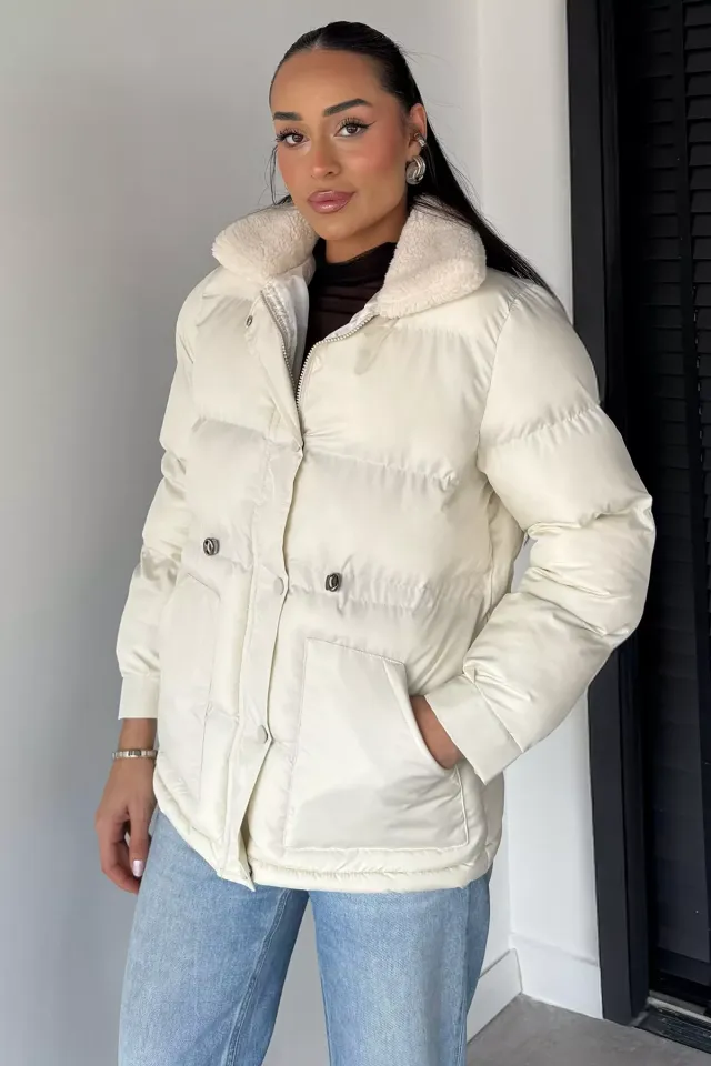 جاكيت نسائي كيوت ومريح بملمس فرو ناعم وياقة قائمة مع سحاب عملي لإطلالة شتوية دافئة للاستخدام اليومي.