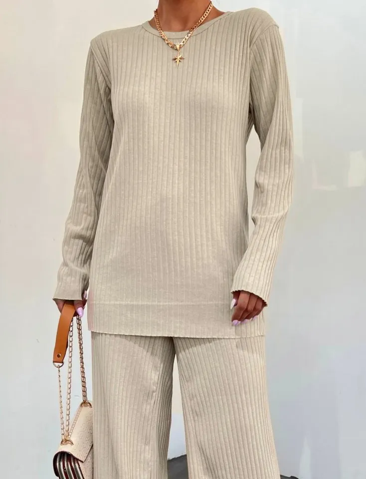 طقم نسائي سويتشيرت بغطاء رأس وسحاب نصفي وبنطلون بخصر مرن - Beyond Store