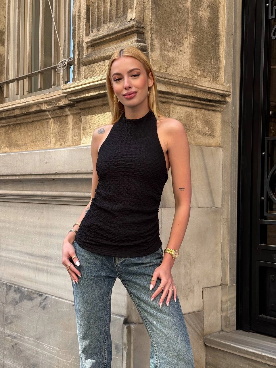 بلوزة نسائية مريحة بقصة محددة مع فتحة أمامية وياقة قائمة، تعطيك لوك صيفي عصري وسهل للاستخدام اليومي.