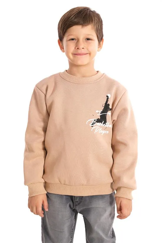 سويت شيرت ولادي بياقة دائرية مزين بتطريز أمامي أنيق يضيف لمسة مميزة. مصنوع من قماش ناعم ومريح يوفر الدفء والراحة، مناسب للاستخدام اليومي والإطلالات الكاجوال.