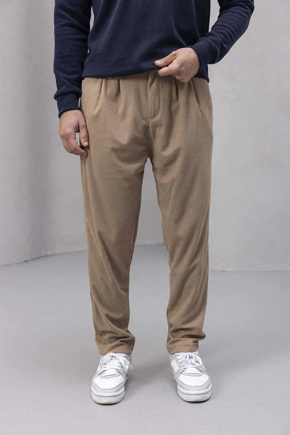 بنطال رجالي كاجوال سادة بقصّة مستقيمة وحزام مطاطي، مصنوع من %75 قطن و%20 بوليستر و%5 إيلاستان. يقدّم شكلا متوازنًا وراحة مناسبة للاستخدام اليومي.
