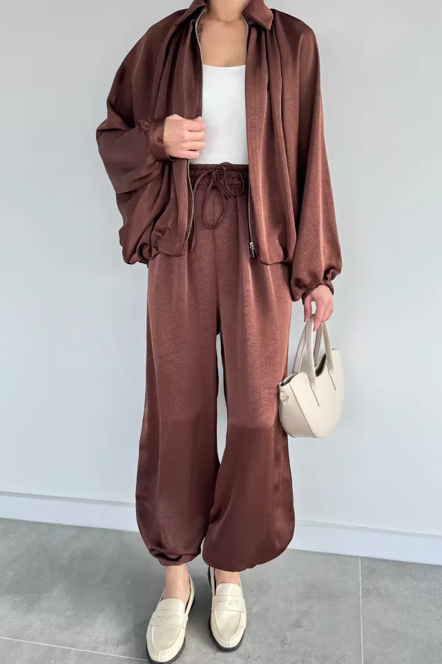 تونيك بسحاب أمامي، بنطال بخصر مرن، تصميم بجيوب مزدوجة
