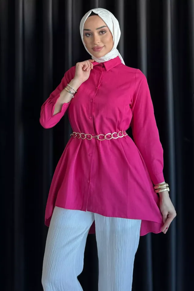 تونيك نسائي محبوك محتشم بقصة كتف منخفضة وشق جانبي لراحة يومية وستايل شتوي دافئ وسهل.