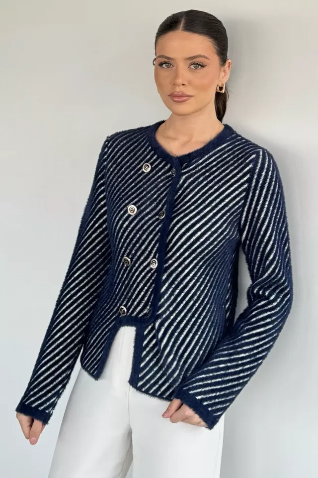 كارديغان تريكو نسائي قصير بياقة V وازرار امامية