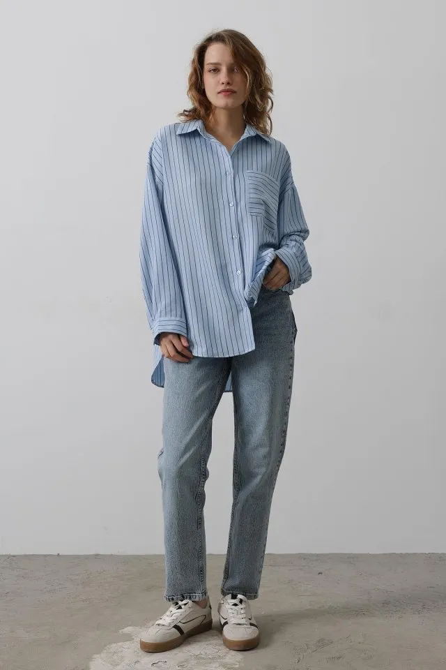 قميص نسائي سادة بأكمام طويلة وقصة أوفر سايز يمنح مظهرًا بسيطًا وعصريًا. مصنوع من قماش ناعم وخفيف يوفر راحة طوال اليوم، مناسب للاستخدام اليومي والإطلالات الكاجوال.