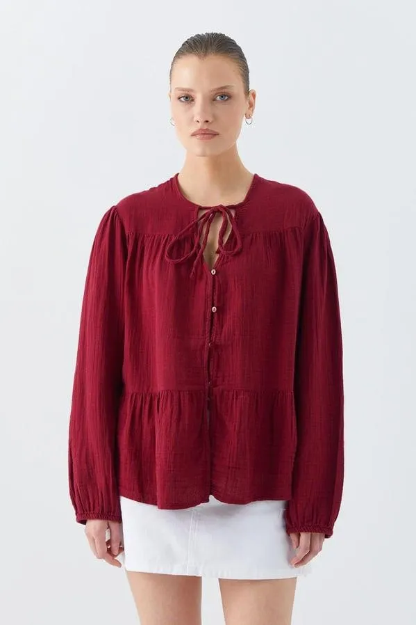 قميص سادة بأكمام طويلة للنساء