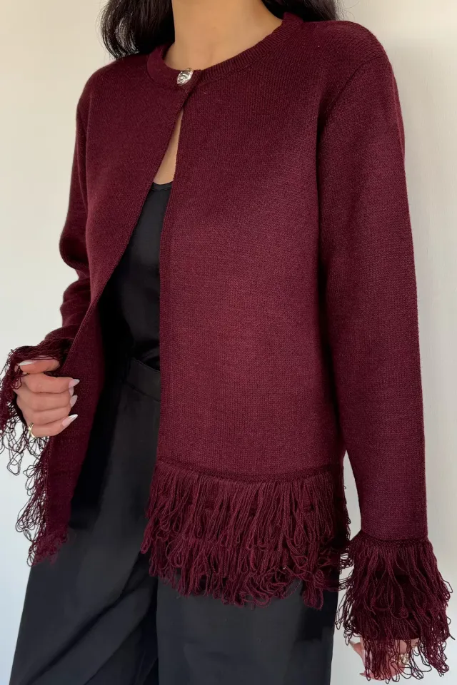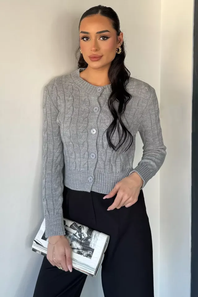 كارديغان تريكو لامع بجيوب مزدوجة وأزرار أمامية للنساء