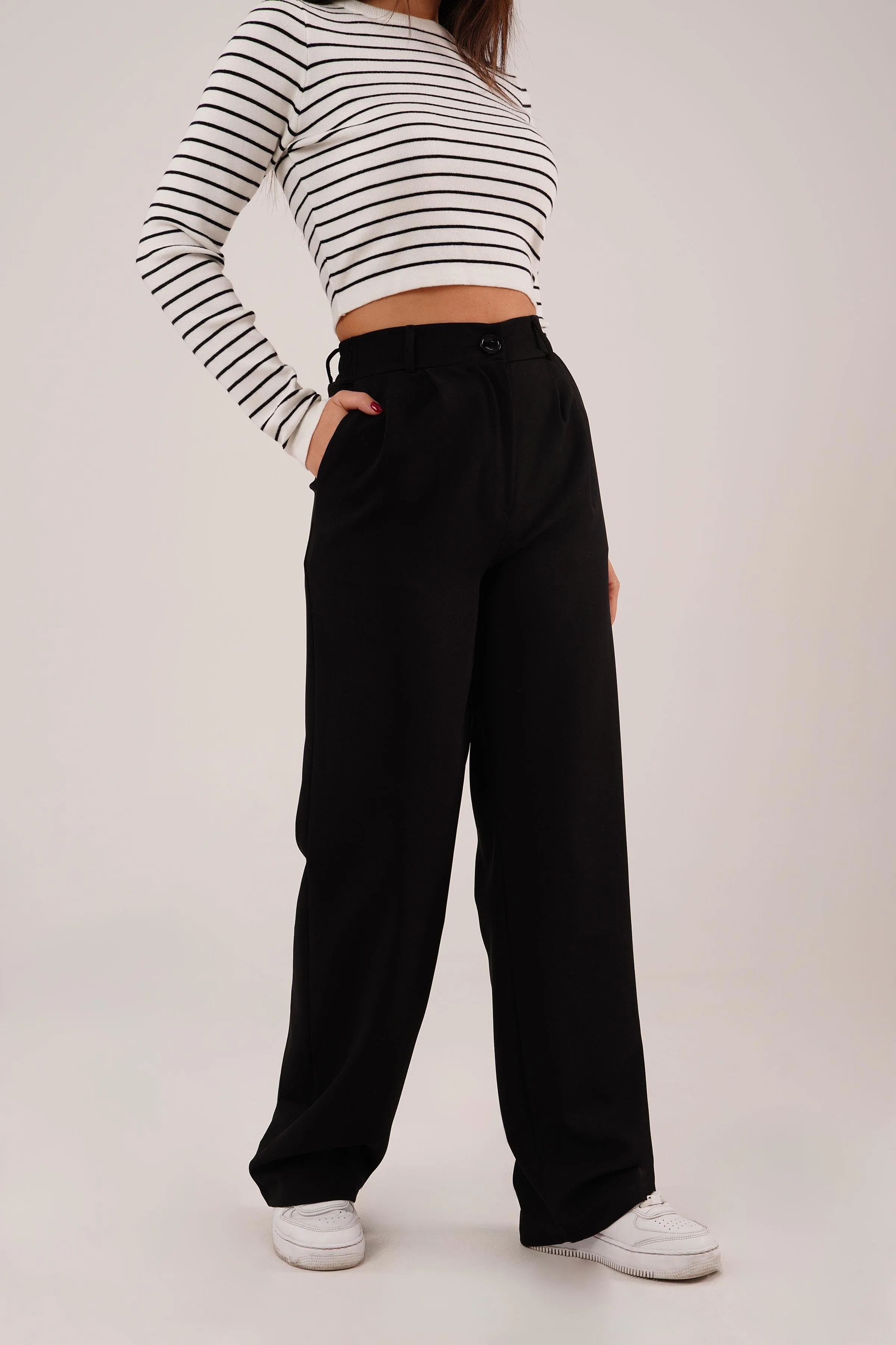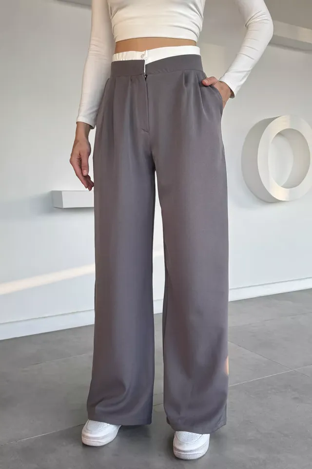 بنطال نسائي مريح بخصر عالي وقصة مستقيمة مع خصر فيلكرو لستايل يومي أنيق لمواسم الانتقال.
