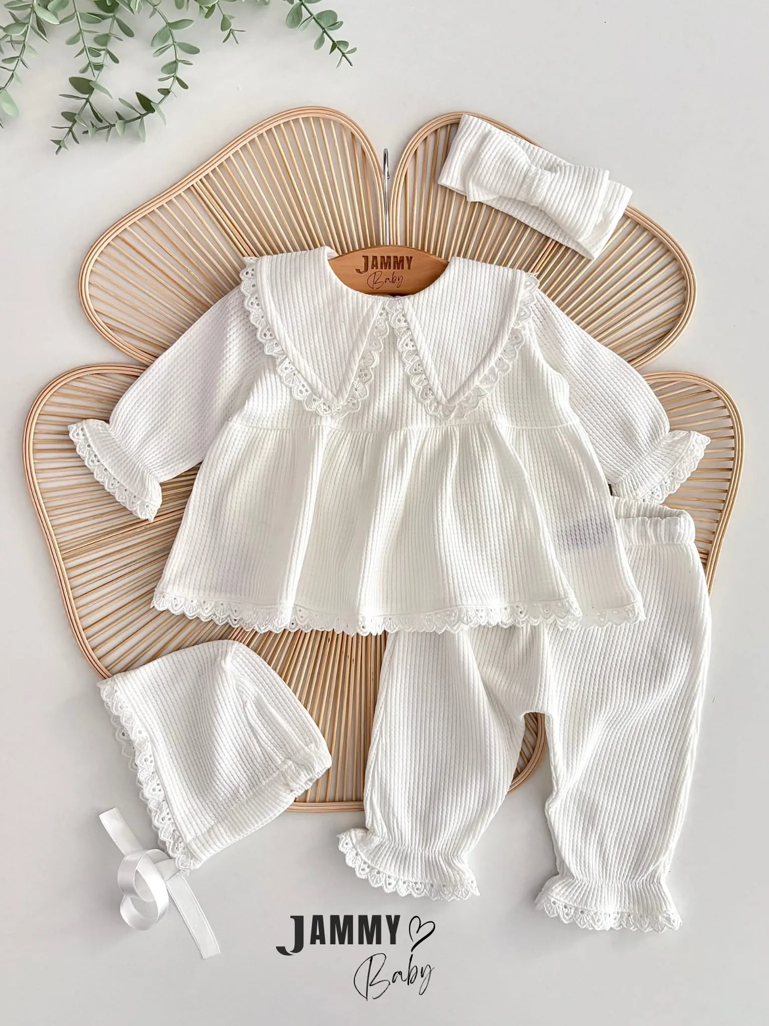 طقم مطبوع بأكمام طويلة و تفاصيل كشكشة للبنات الرضع - Beyond Store