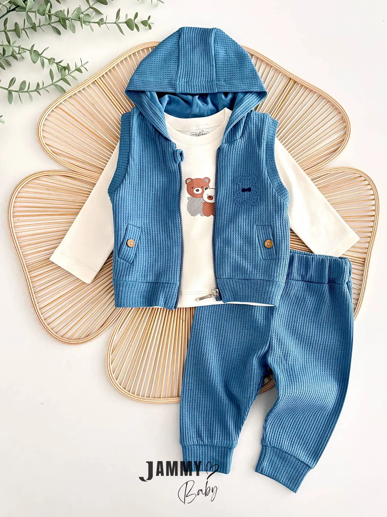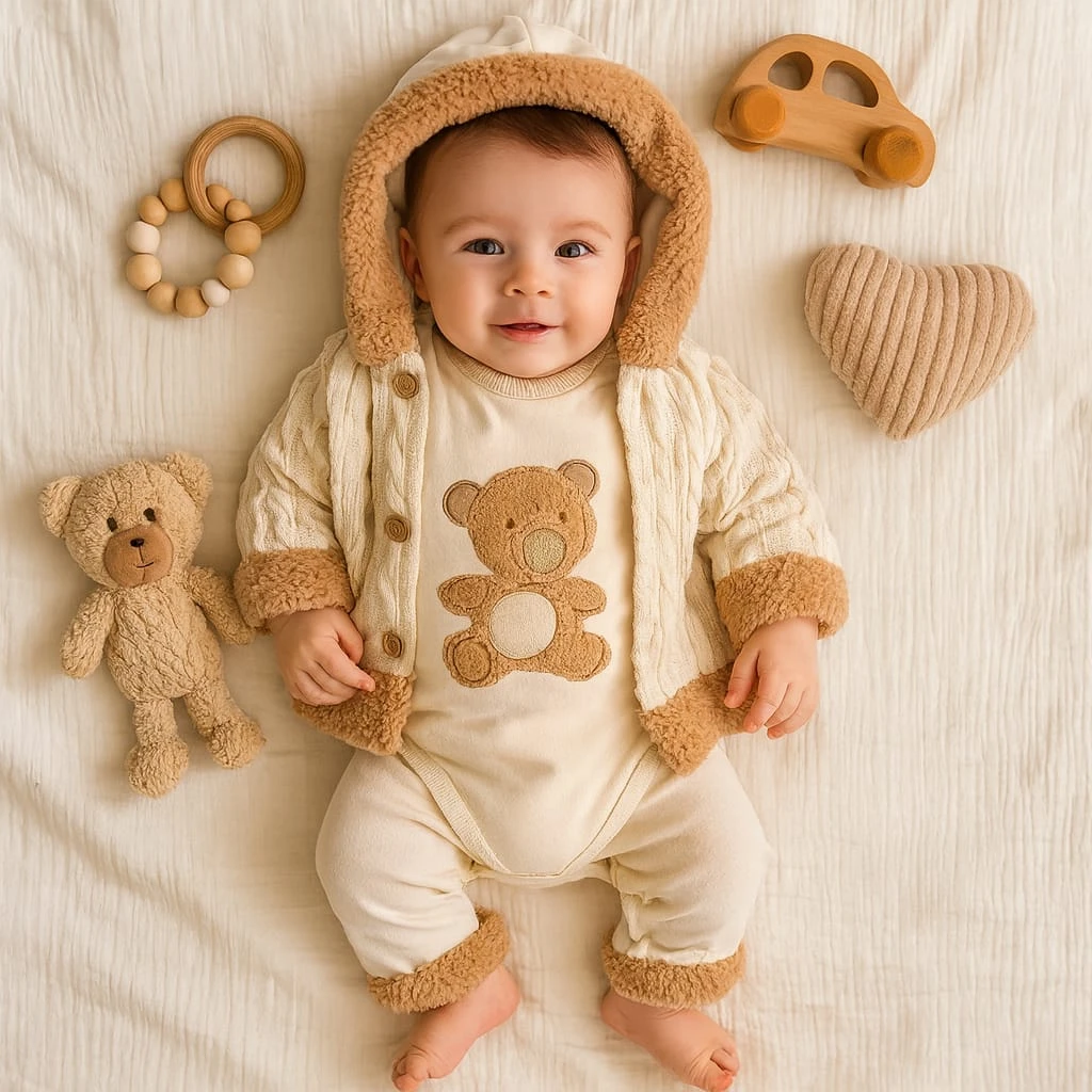 طقم رياضي مخطط مطرز بدب للأولاد الرضع - Beyond Store