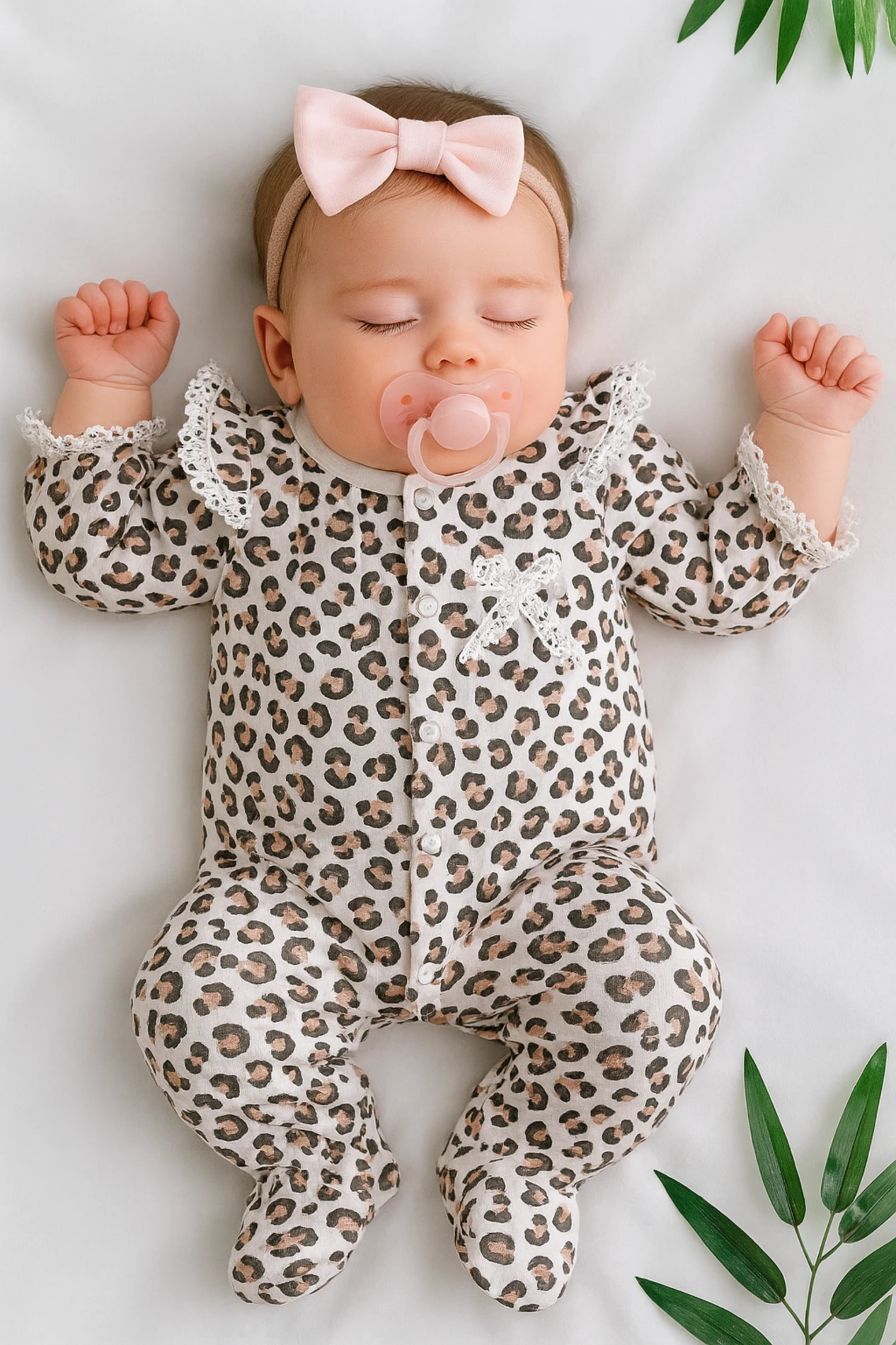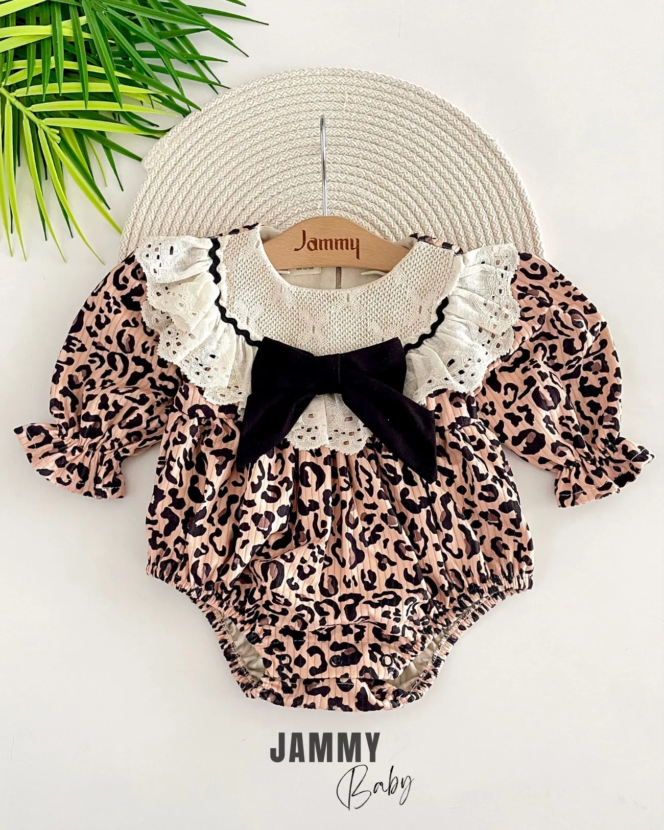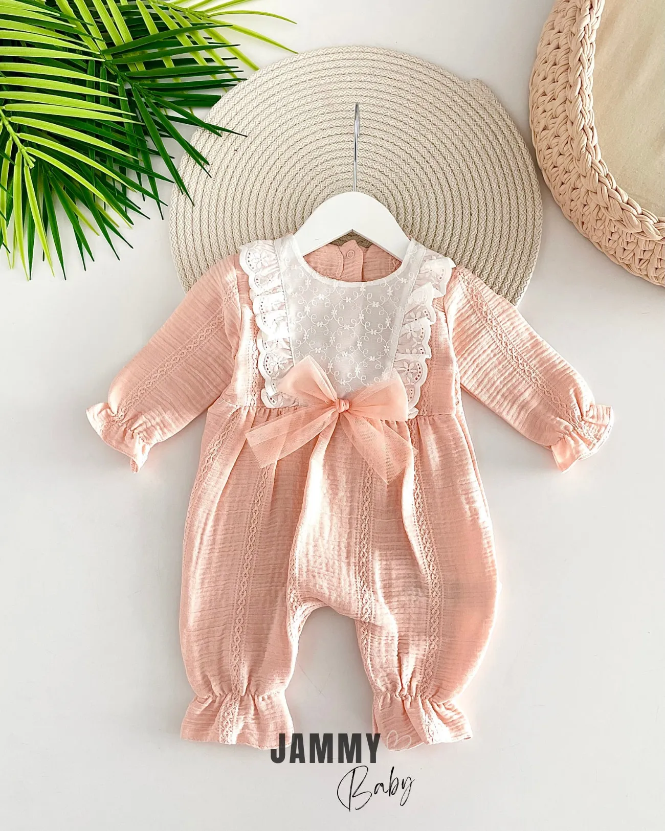 طقم أفرول أنيق مطرز بتفاصيل تاج راقية ومزين بفيونكة لطيفة، يأتي مع قبعة متناسقة لإطلالة متكاملة. مصنوع من قماش ناعم ولطيف على بشرة الطفل، يوفر راحة مثالية ويجمع بين الأناقة والعملية للاستخدام اليومي والمناسبات الخاصة.