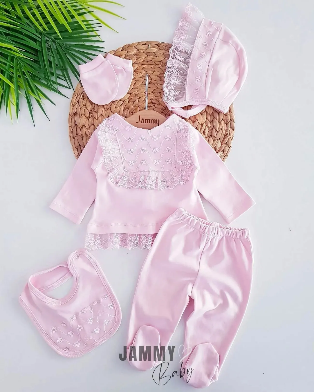 طقم للبنات الرضع مطبوع عليه طائر مطرّز