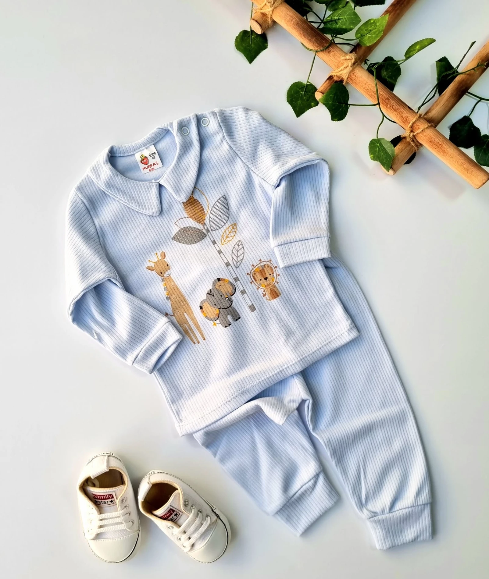 طقم مضلع مطرز بأكمام طويلة للأولاد الرضع - Beyond Store