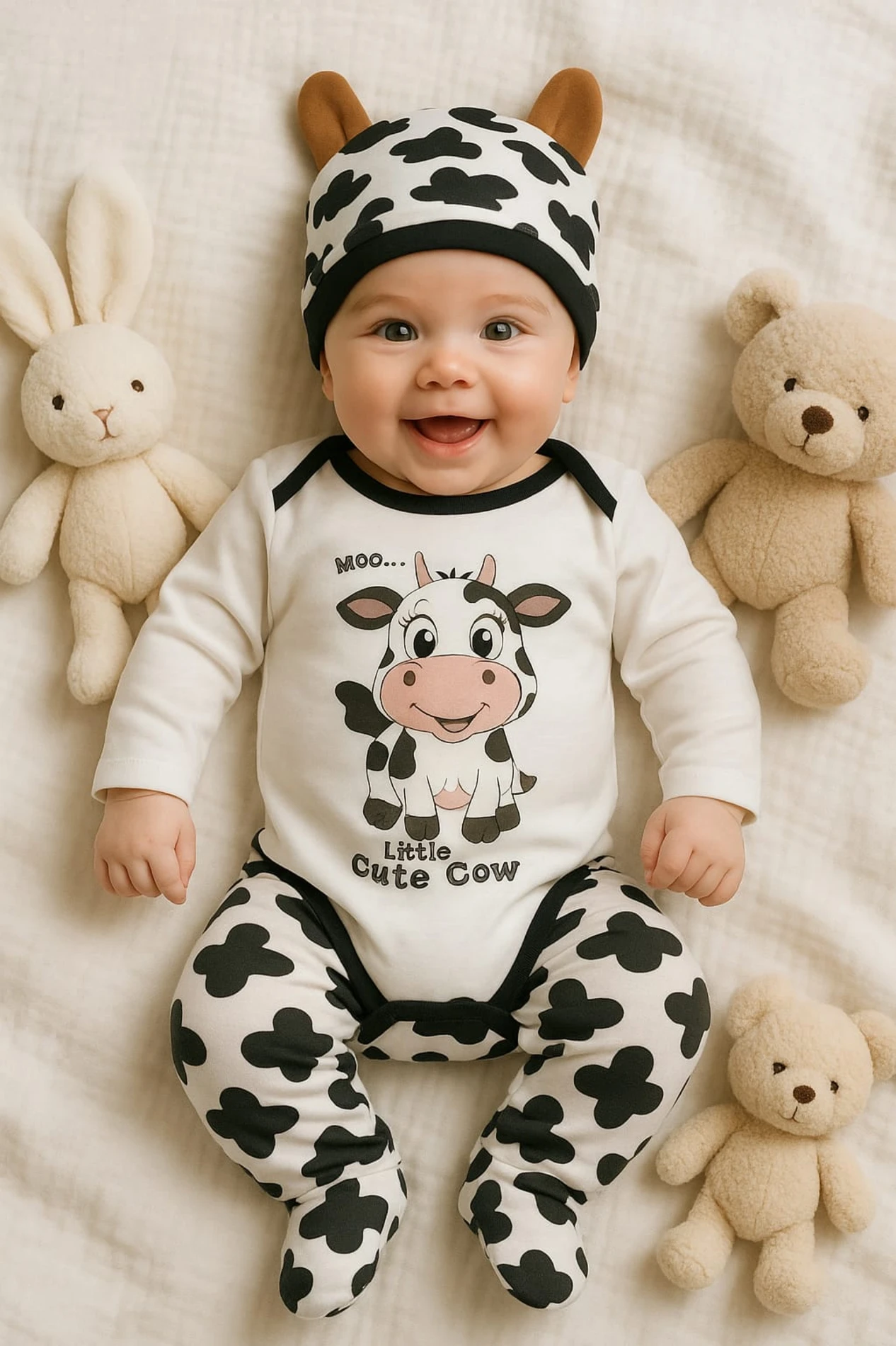 طقم مضلع مطرز بأكمام طويلة للأولاد الرضع