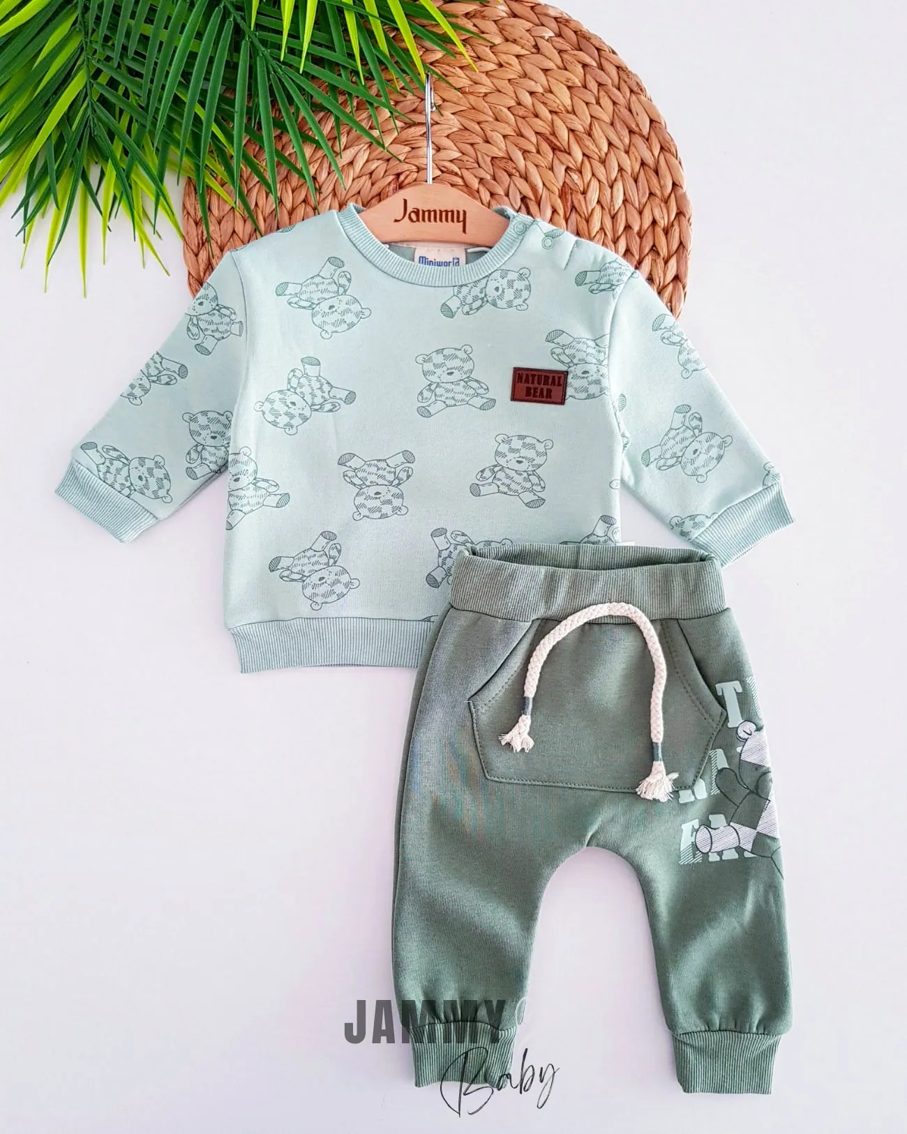 طقم ولادي مكون من 3 قطع مزين بطبعات لطيفة وأكمام طويلة مع أزرار كبس جانبية وساعدين مدمجين لحماية اليدين. مصنوع من قماش ناعم ولطيف على بشرة الطفل، يوفر الراحة وسهولة الحركة للاستخدام اليومي.