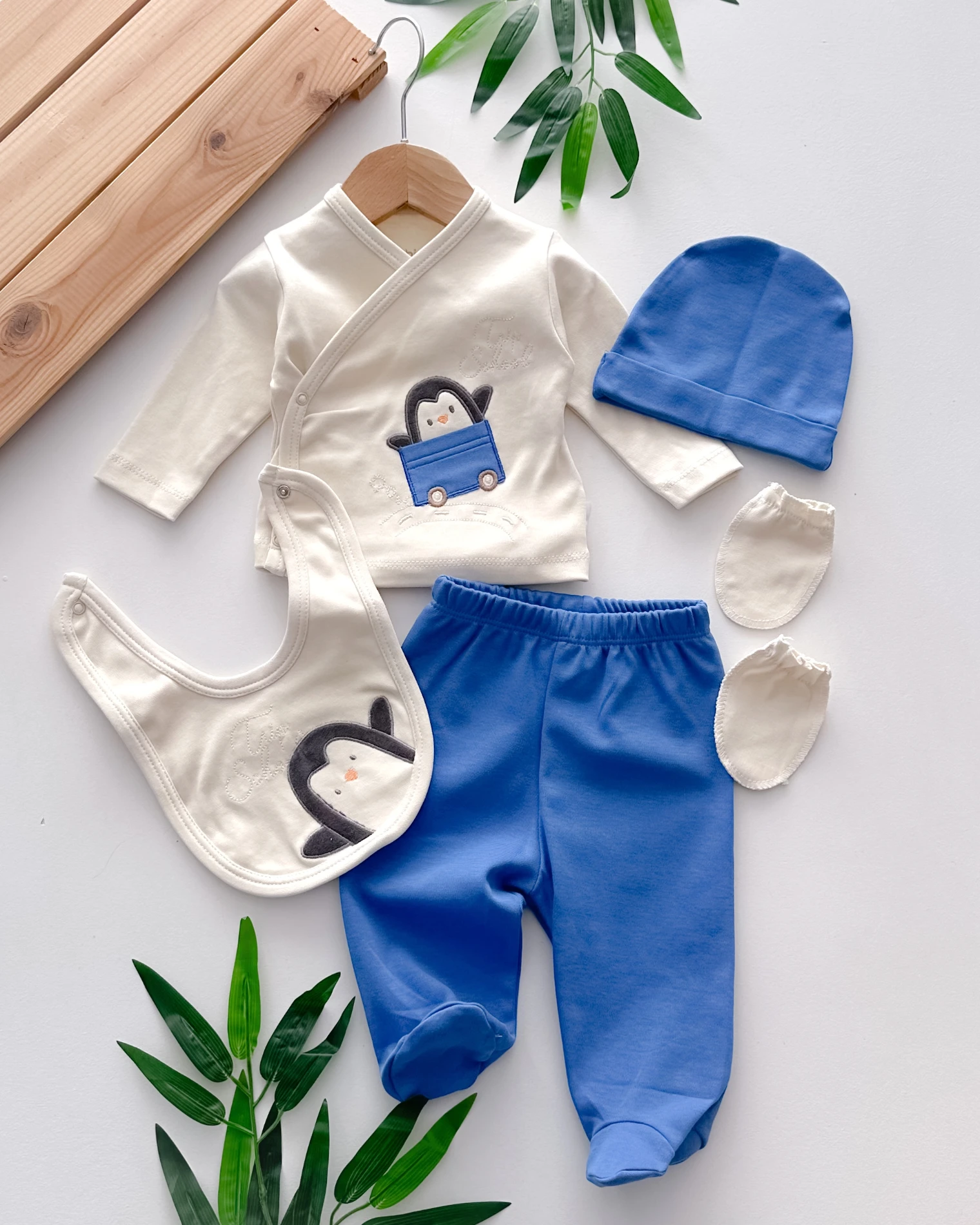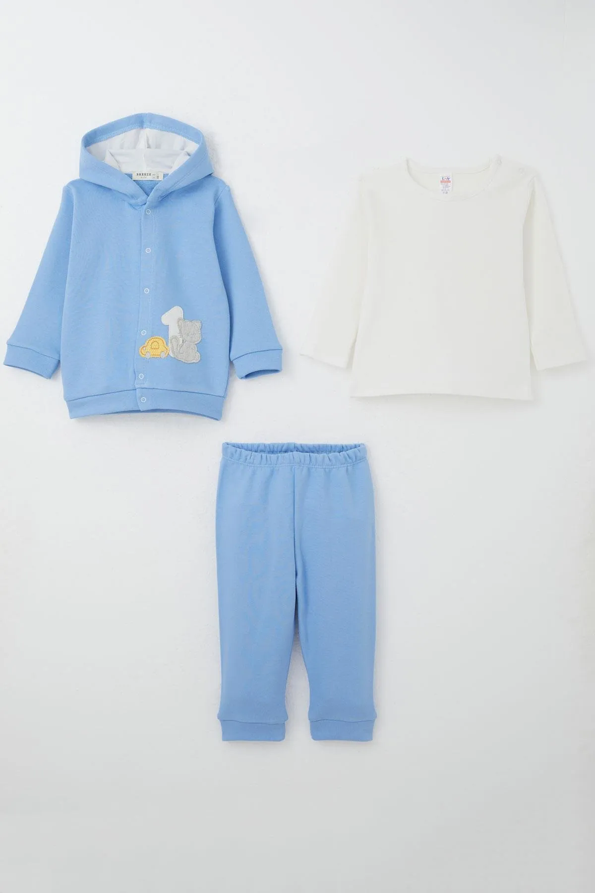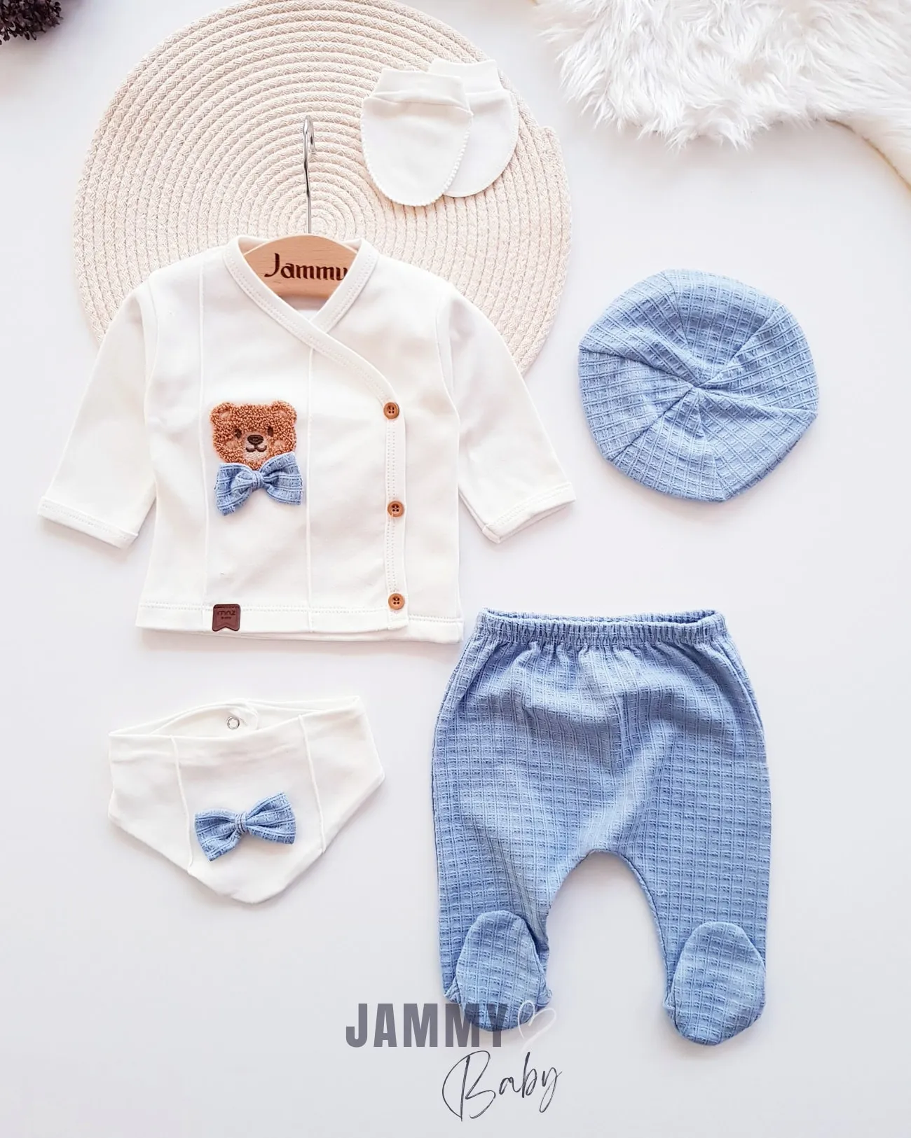 طقم أطفال مضلع مزين بتطريز دب لطيف مع تفاصيل أزرار خشبية تضيف لمسة أنيقة. مصنوع من قماش ناعم ومريح بأكمام طويلة ليمنح الطفل راحة طوال اليوم.