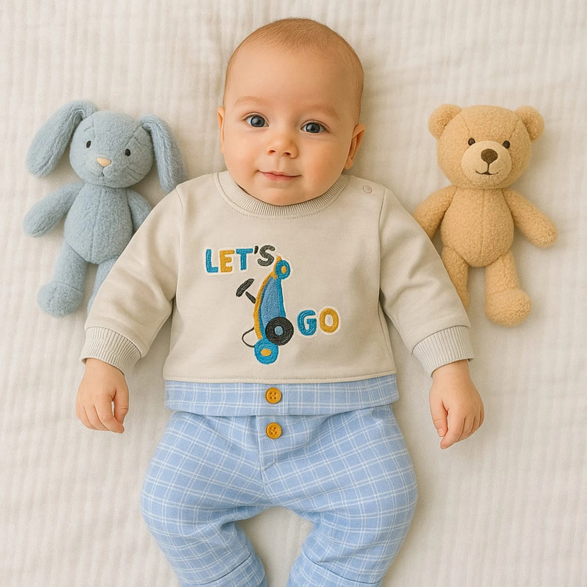 طقم مطبوع بأكمام طويلة للأولاد الرضع - Beyond Store