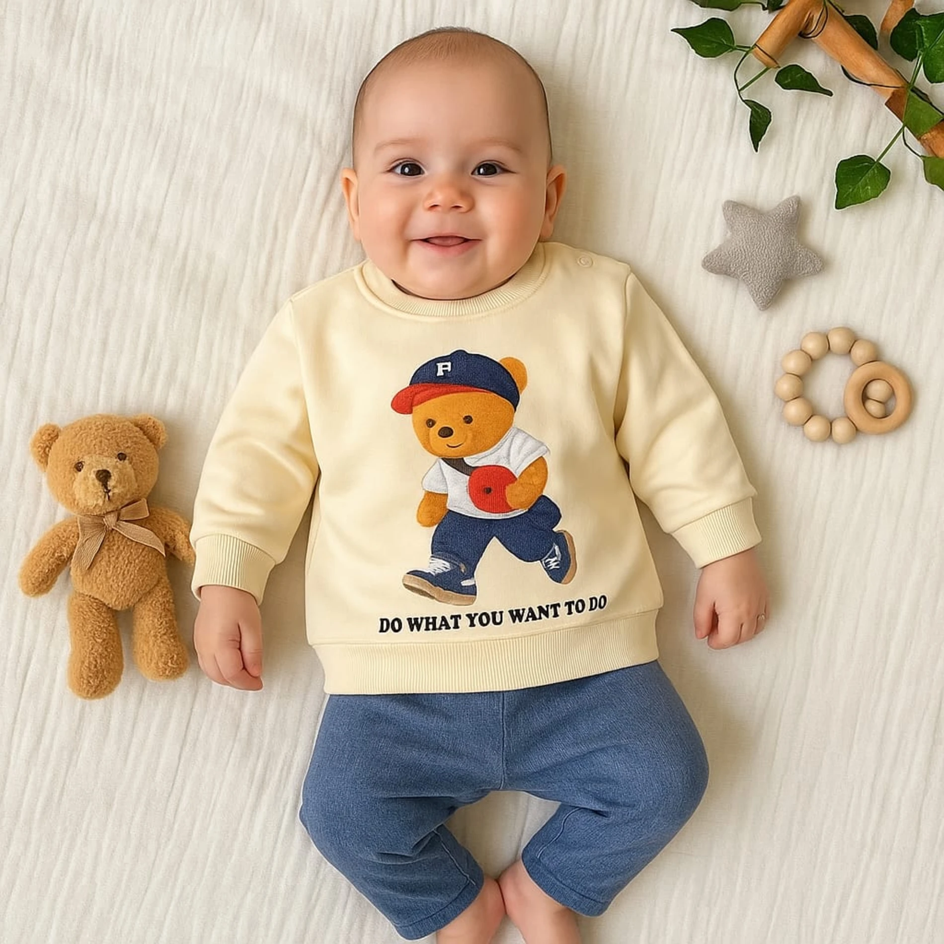 طقم موسمي مكوّن من 3 قطع بطبعة ديناصور مرحة وتصميم عملي مريح. مصنوع من قماش ناعم ومسامّي يمنح طفلك راحة طوال اليوم.