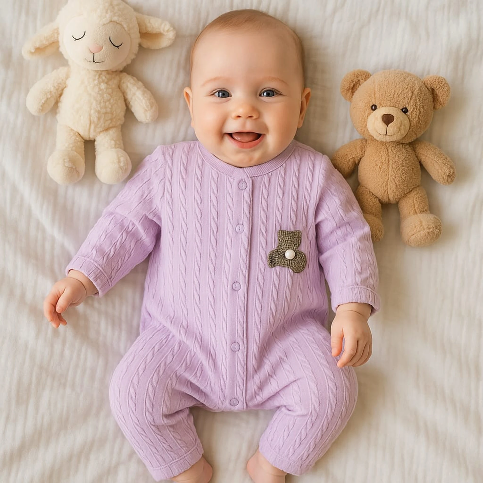طقم أفرول بناتي مكوّن من 3 قطع بأكمام طويلة وتفاصيل فيونكة لطيفة تمنح إطلالة أنيقة. مصنوع من قماش ناعم ومريح ولطيف على بشرة الرضع، مناسب للاستخدام اليومي والموسمي.