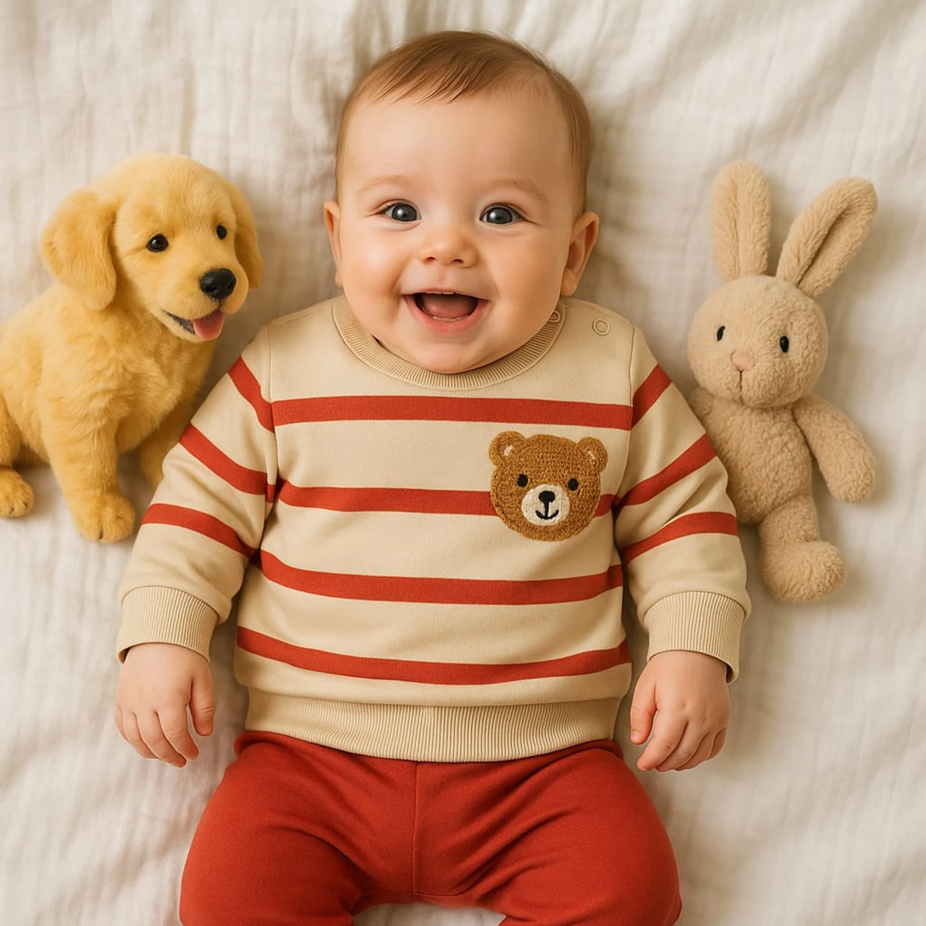 طقم للجنسين مكون من 3 قطع بغطاء رأس وطبعة دببة لطيفة مع قطع متناسقة. مصنوع من قماش ناعم ومريح على البشرة ليمنح راحة طوال اليوم.