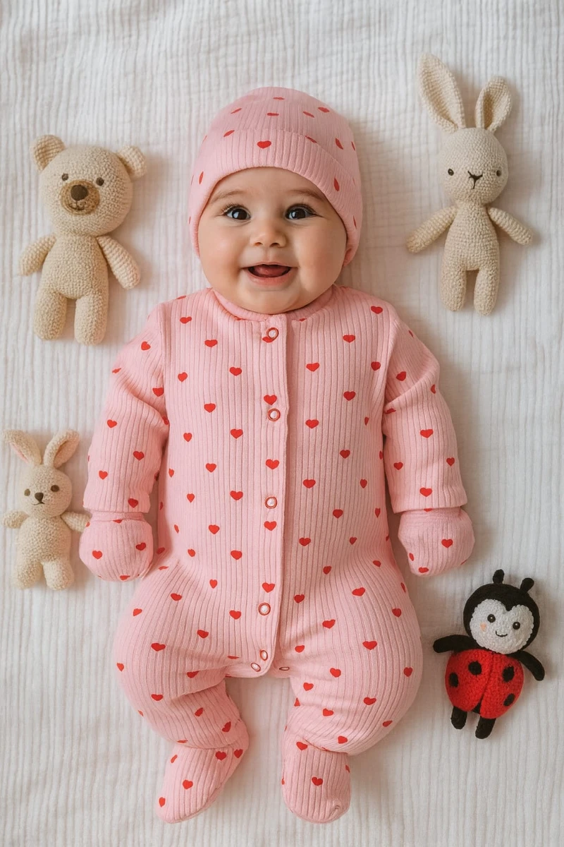 أفرول بناتي بطبعة لطيفة مصنوع من قماش ناعم ومريح على بشرة الطفل الحساسة. مزود بأزرار كبس عملية تسهّل الارتداء وتبديل الحفاض مع تصميم يمنح حرية حركة وراحة طوال اليوم. مناسب للاستخدام اليومي في الفصول المعتدلة.