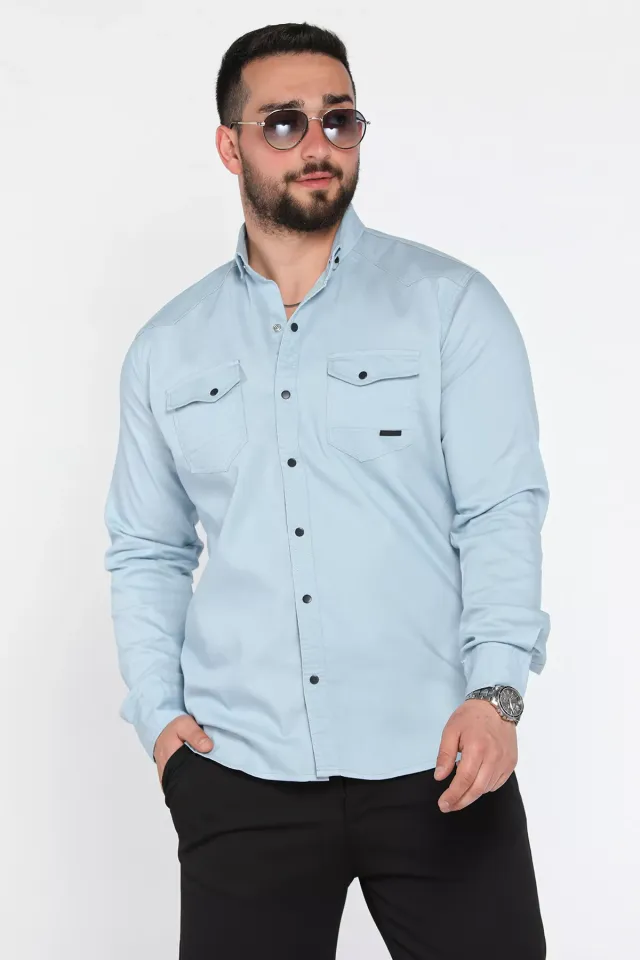 قميص رجالي كاجوال سادة بياقة قميص وأكمام طويلة وأزرار أمامية. مصنوع من مزيج البوليستر والإيلاستين، مما يوفر مرونة ومظهرًا أنيقًا ومنظمًا.
