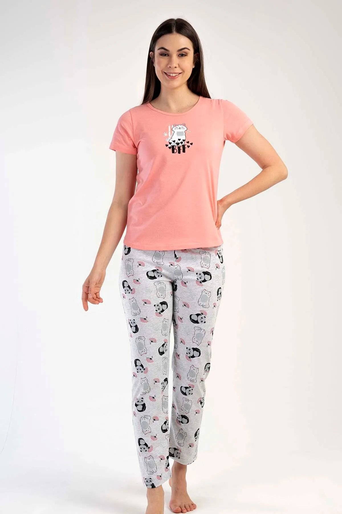 الموديل ترتدي مقاس 40 – الطول 172 سم، الوزن 53 كغ، الصدر 83 سم، الخصر 70 سم، الورك 91 سم
